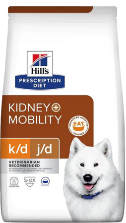 Les croquettes pour chien Hill's Prescription Diet k/d + Mobility sont des aliments diététiques complets destinés à soutenir la fonction rénale en cas d'insuffisance rénale chronique ou temporaire et à soutenir le métabolisme articulaire en cas d'arthrose chez le chien adulte. Cet aliment est pauvre en phosphore, limité en protéines, mais contient des protéines de haute qualité, riche en acides gras EPA et oméga 3 totaux et adéquat en vitamine E.