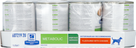 Les aliments pour chiens Hill's Prescription Diet Metabolic au goût de poulet sont des aliments complets destinés à réduire l'obésité et à maintenir un poids sain chez les chiens adultes. Cet aliment a un faible contenu énergétique.