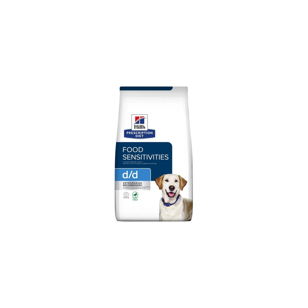 Les croquettes pour chiens Hill's PRESCRIPTION DIET d/d avec canard et riz sont des aliments diététiques complets destinés à réduire les intolérances à certains ingrédients et/ou nutriments et à soutenir la fonction cutanée en cas de troubles de la peau et de perte excessive de poils chez les chiens adultes. Cet aliment contient des niveaux élevés d'acide linoléique, d'acide eicosapentaenoïque et d'acide docosahexaenoïque, ainsi qu'un nombre sélectionné et limité de sources de protéines et de glucides.
