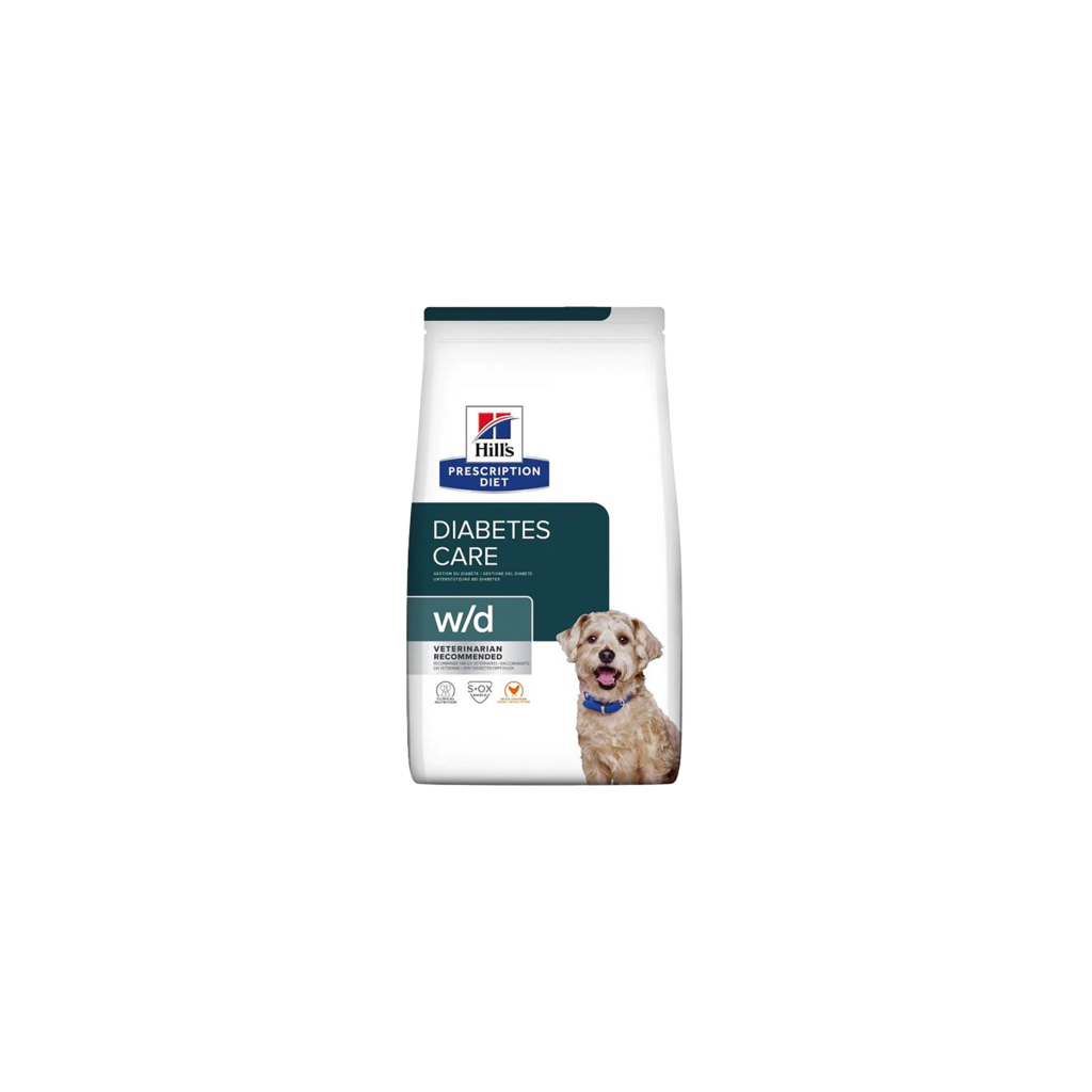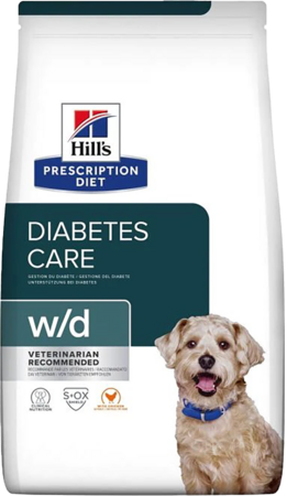 Les aliments pour chiens Hill's Prescription Diet w/d avec poulet sont des aliments diététiques complets destinés à la régulation de l'apport en glucose (diabète sucré) chez les chiens adultes. Cet aliment contient de faibles niveaux de mono- et disaccharides.