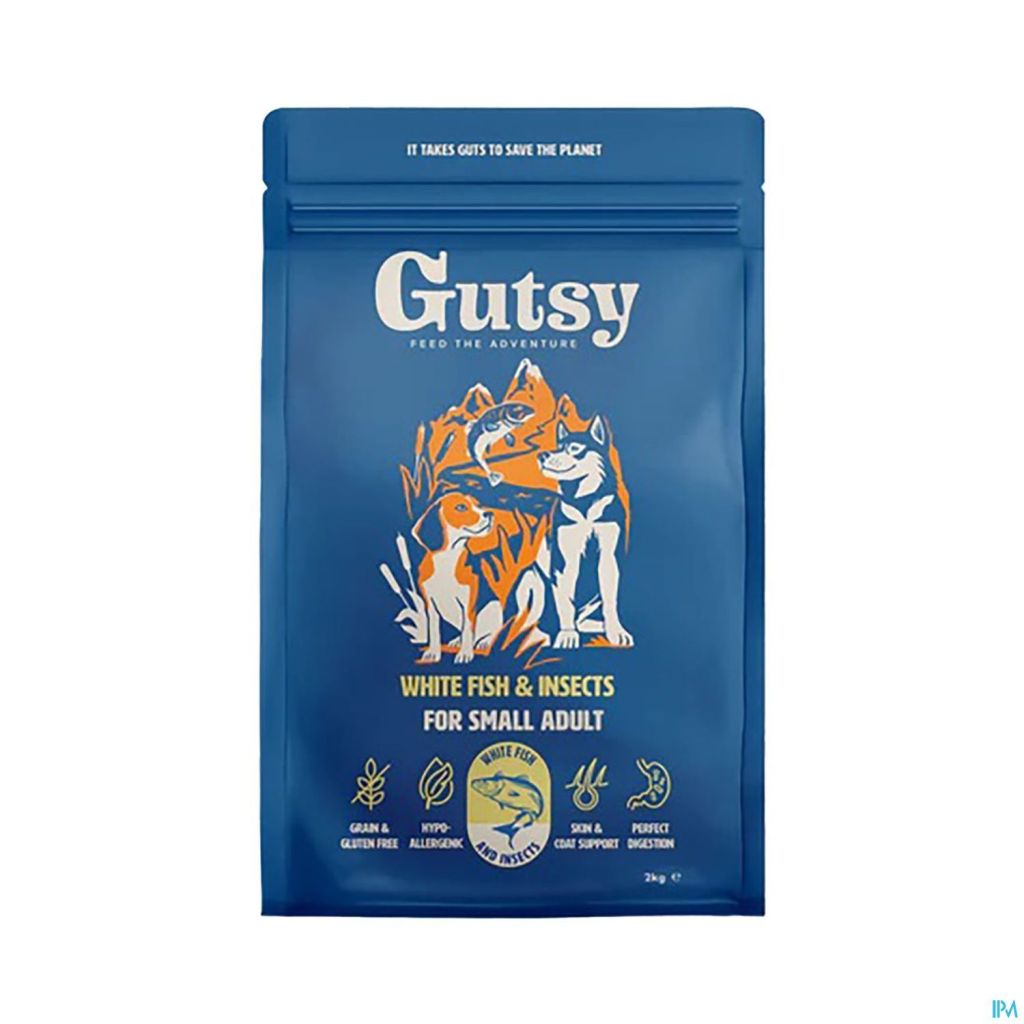 Les croquettes Gutsy White Fish & Insect pour petits chiens adultes sont des croquettes hypoallergéniques, totalement exemptes de céréales et de gluten. Fabriquées avec amour pour les mangeurs sensibles.
