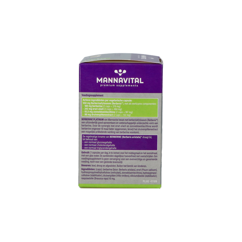 Plusieurs plantes dans la nature doivent leur efficacité à la berbérine, une substance végétale spéciale de couleur jaune intense. Elle peut notamment avoir un effet positif sur le métabolisme cellulaire, ce qui signifie en fin de compte une meilleure transformation du glucose et des substances grasses que sont le cholestérol et les triglycérides, et une diminution de leur taux. Cela favorise également les fonctions cardiovasculaires et hépatiques. Malheureusement, la berbérine n'est pas très bien absorbée par l'intestin. C'est pourquoi un extrait de Berberis aristata (curcuma des bois) a été choisi pour BERBERINE PLATINUM, qui est très bien absorbé grâce à la "technique du phytosome" par enrobage avec de la lécithine de tournesol et des protéines de pois.