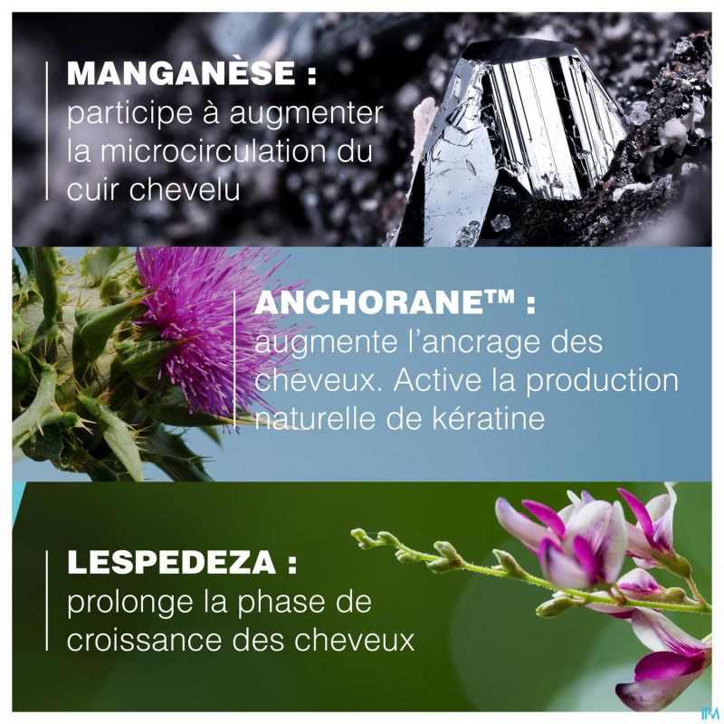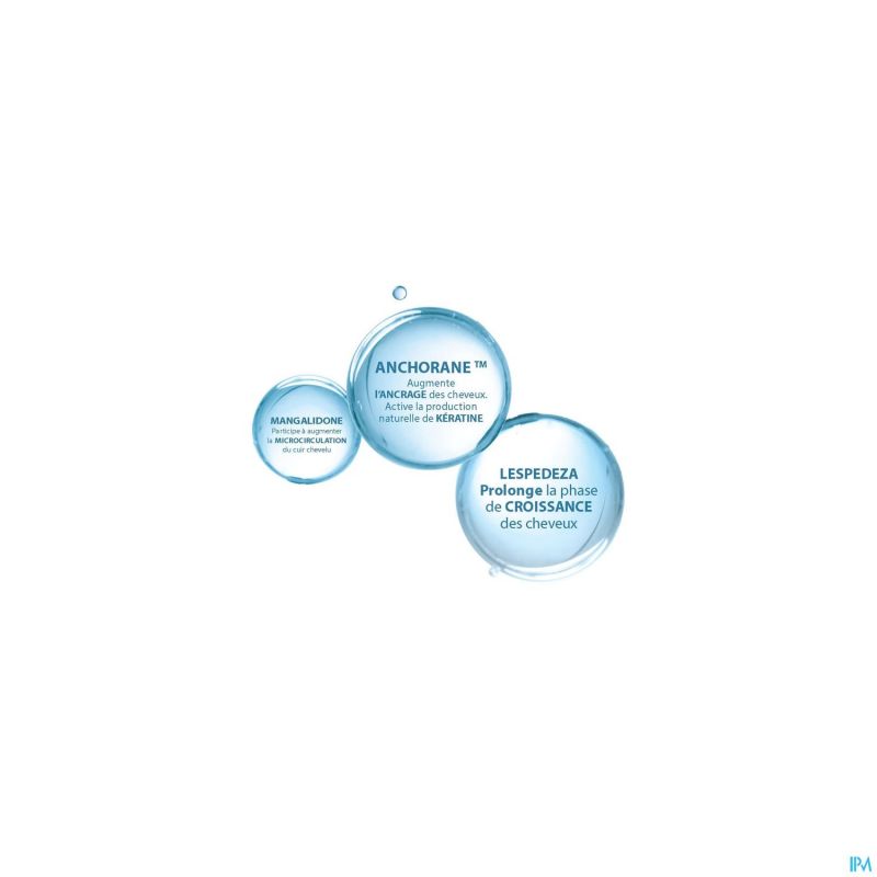 • Il densifie la chevelure², augmente le volume² et renforce la fibre capillaire² • Mécanismes d'action inédits : Augmentation de l'ancrage et régulation du cycle piaire • Dans sa formule : de l'ANCHORANE pour l'ancrage, du LESPEDEZA pour la densité de la chevelure, de la MANGALIDONE pour la microcirculation et des agents hydratants pour le confort d'utilisation