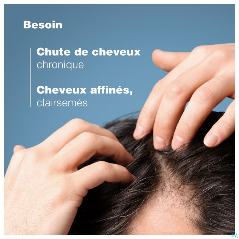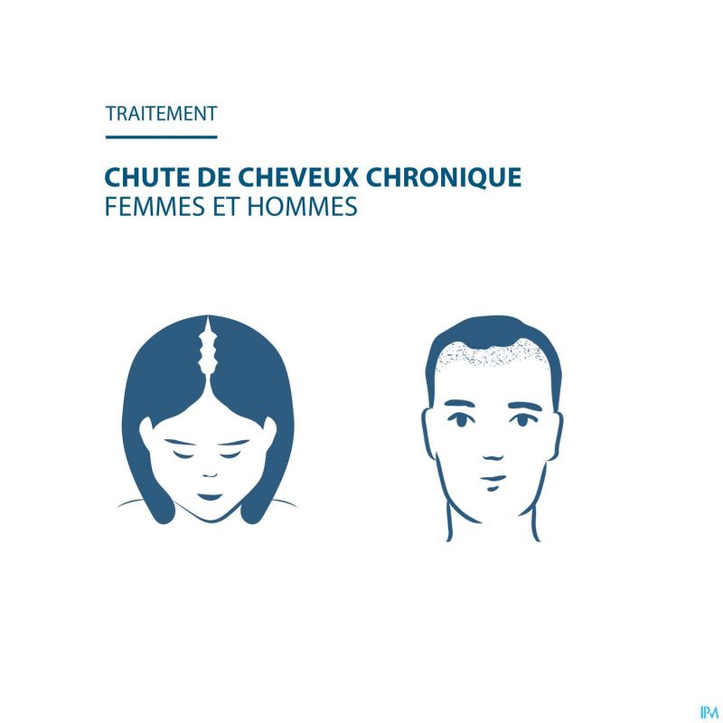 Chute de cheveux : • 1 fois par jour, appliquer 8 pulvérisations sur le cuir chevelu sec ou humide (2 pulvérisations par raie : au milieu, côté droit, côté gauche et derrière). Masser du bout des doigts pour faire pénétrer le produit.