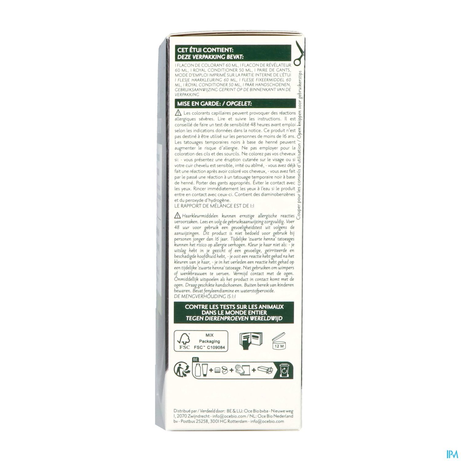 Ingrédients Coloration des cheveux : Laureth-4, Propylene glycol, Aqua (water), PEG-2 Oleamine, Ethanolamine, p-Phenylenediamine, Oleic acid, Aloe barbadensis (Aloe Vera) leaf juice, Hamamelis virginiana (Witch Hazel) leaf extract, Betula Alba (Birch) leaf extract, Echinacea angustifolia (Echinacea) root extract, Juglans regia (Walnut) leaf extract, Rheum Officinale stem extract, Cinchona calisaya (Cinchona) bark extract, Limnanthes alba (Meadowfoam) seed oil, 4-Chlororesorcinol, Tetrasodium glutamate diacetate, 2,4 Diaminophenoxyethanol HCl, Cetrimonium chloride, Sodium metabisulfite, Glycerin