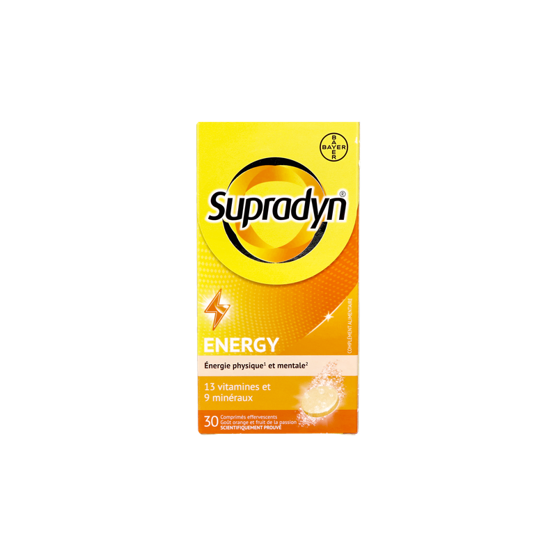Grâce à une formule unique et scientifiquement prouvée, composée de 13 vitamines et 9 minéraux, Supradyn Energy vous aide à retrouver votre énergie physique et mentale au moment où vous en avez le plus besoin.
