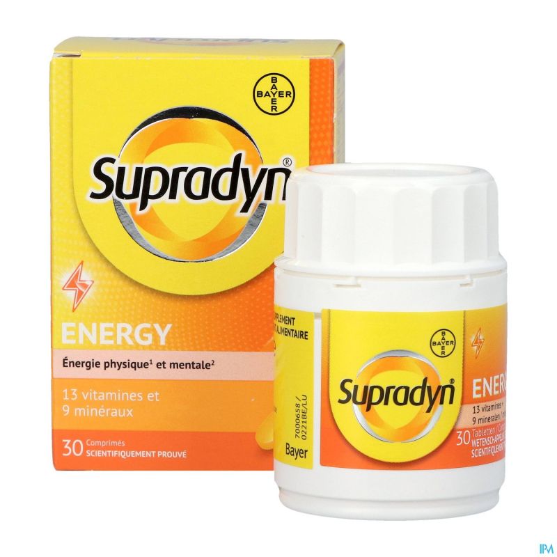 Grâce à une formule unique et cliniquement prouvée composée de 13 vitamines, 9 minéraux et du coenzyme Q10, Supradyn Energy vous aide à retrouver de l'énergie* quand vous en avez le plus besoin.
