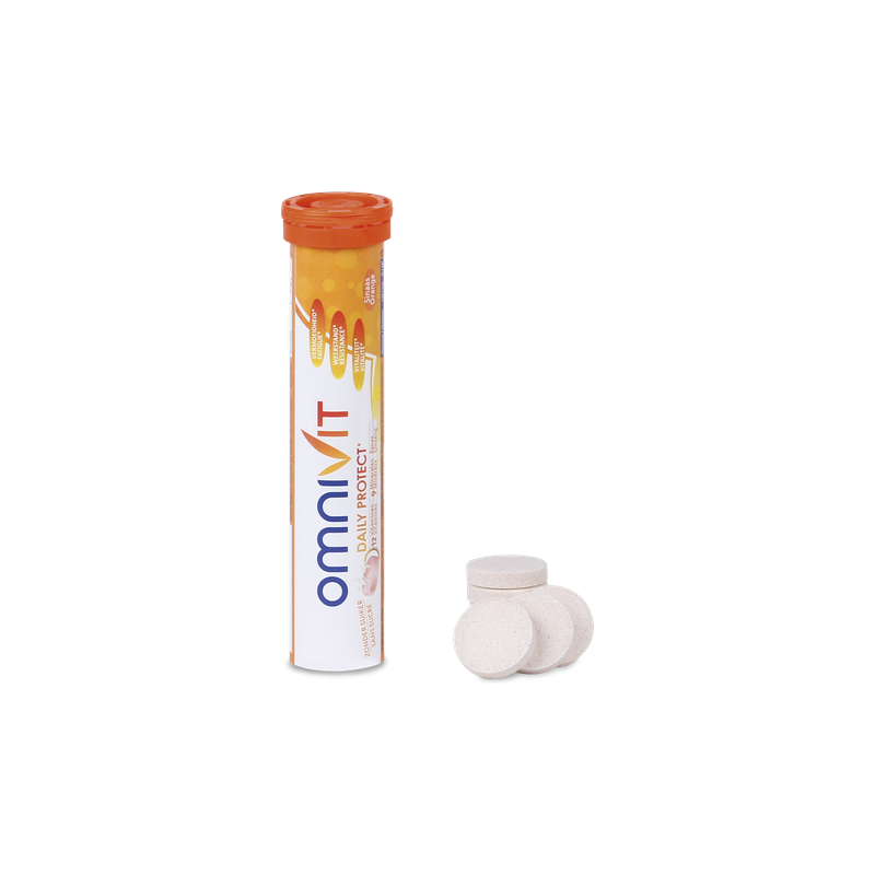 Omnivit Daily Protect Bruistabletten contribue au fonctionnement normal du système immunitaire grâce aux vitamines A et C et aux minéraux sélénium et zinc. L'extrait de Panax Ginseng vous aide à retrouver votre vitalité et améliore vos performances physiques et mentales tandis que les vitamines B, C et le fer contribuent à réduire la fatigue et l'asthénie.