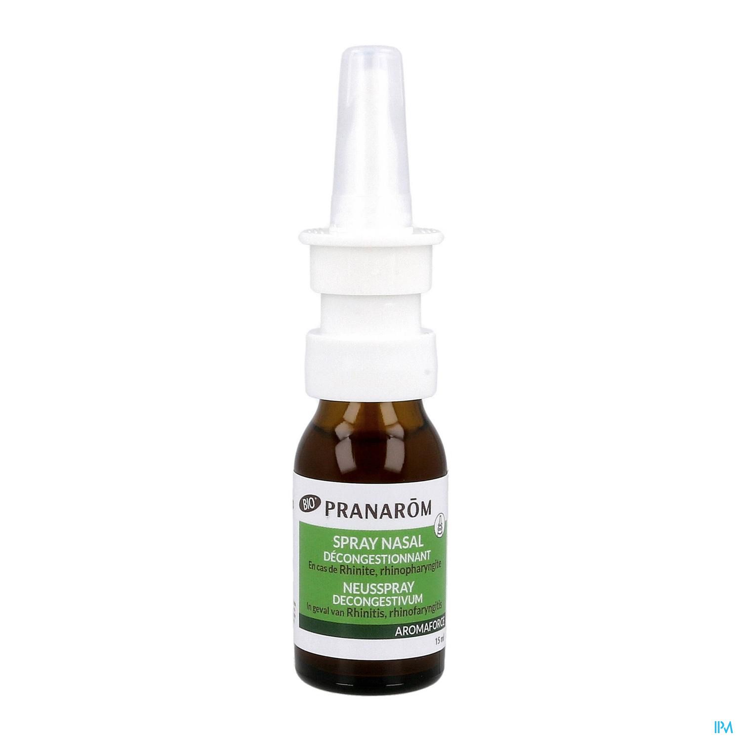Solution hypertonique décongestionnante pour pulvérisation nasale. Le spray nasal Aromaforce est une solution hypertonique associée à des huiles essentielles 100% biologiques. Les huiles essentielles de Mandravasarotra, d'Epinette noire, d'Eucalyptus radié et de Géranium sont reconnues pour leurs vertus assainissante, rafraichissante et adoucissante. Ce produit est utilisé dans le traitement symptomatique de la congestion nasale, par exemple en cas de rhinite et rhinopharyngite. Il décongestionne et purifie le nez en éliminant le mucus, source de contamination bactérienne tout en évitant le dessèchement de la muqueuse. Il procure une sensation de fraicheur grâce à la présence d'huiles essentielles. Aromaforce spray nasal n'entraîne pas d'accoutumance. Convient pour la femme enceinte ou allaitante. Ne contient ni menthe, ni menthol. CE - dispositif-medical Ce dispositif médical est un produit de santé qui porte au titre de cette réglementation la marquage CE. Lire attentivement la notice. Demander conseil à votre pharmacien.