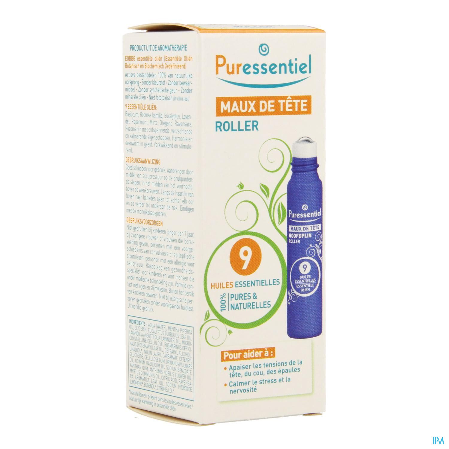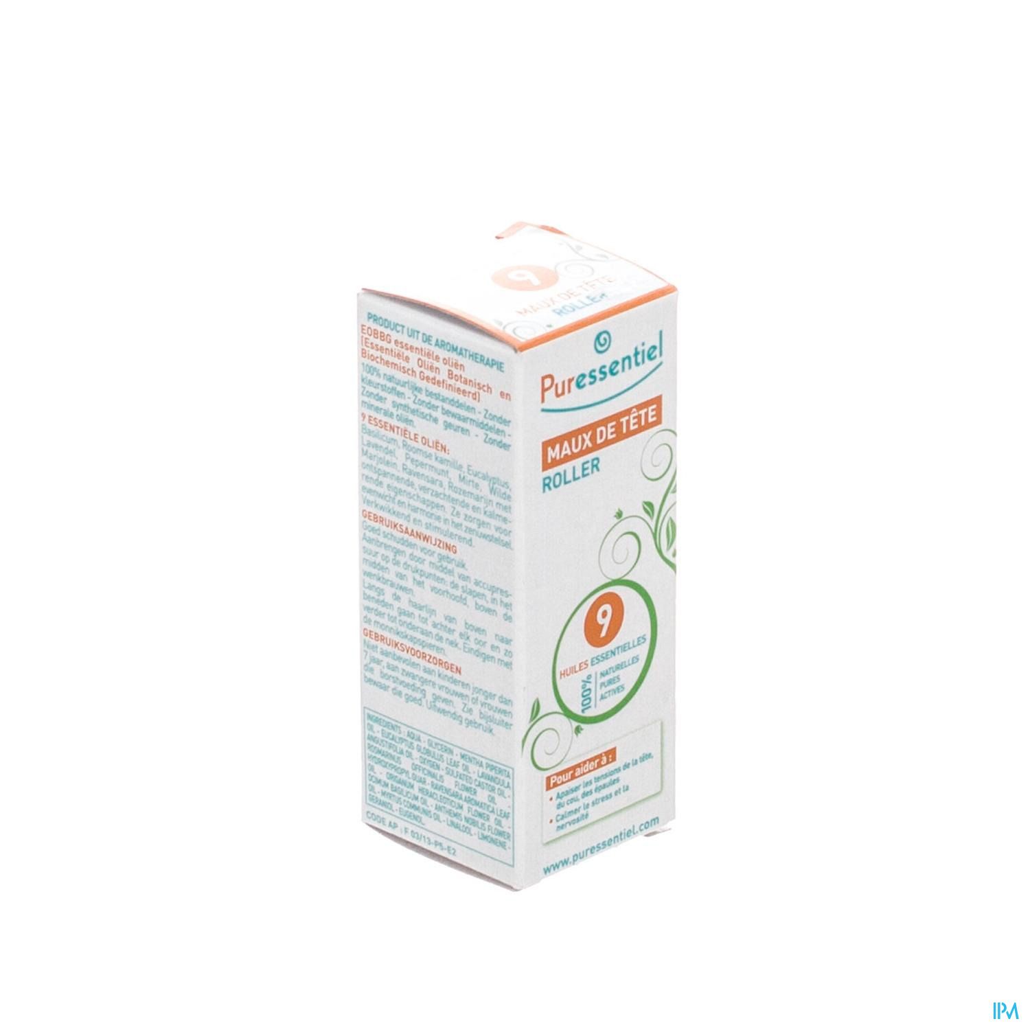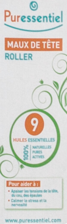 PURESSENTIEL MAUX DE TETE ROLLER AUX 9 HUILES ESSENTIELLES 5 ML