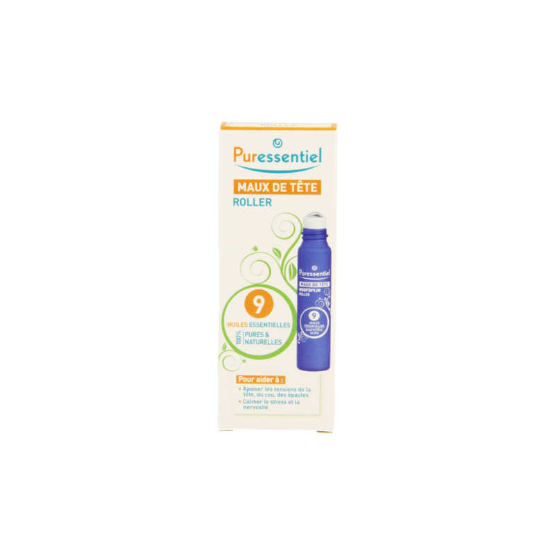 Le Roller Maux de tête des laboratoires Puressentiel contient 9 huiles essentielles aux vertus déstressantes, apaisantes, calmantes, relaxantes. Equilibre et harmonie du système nerveux. Tonique et stimulant.