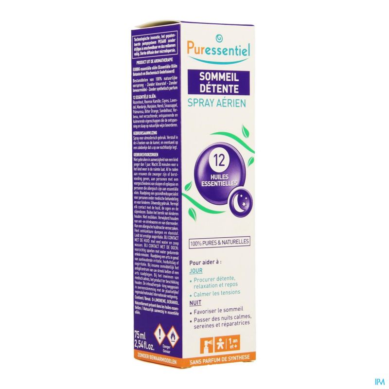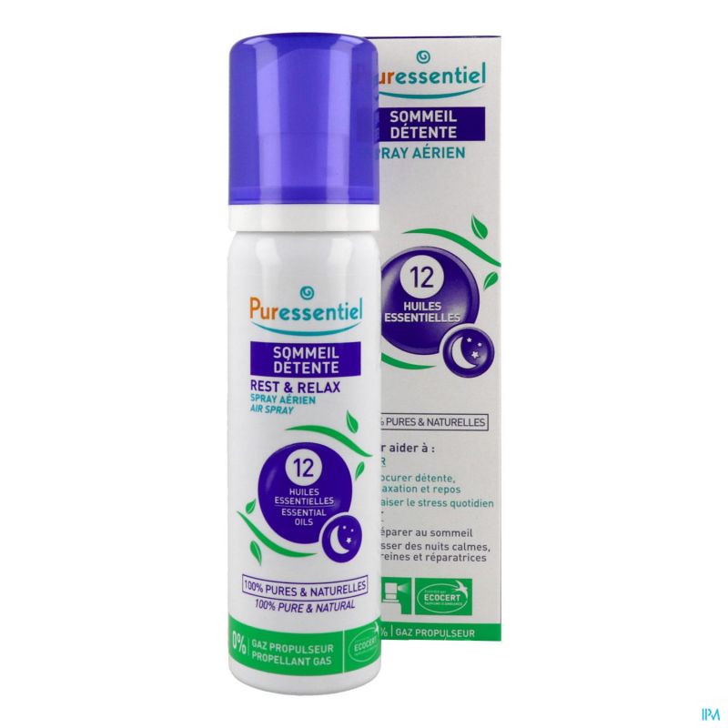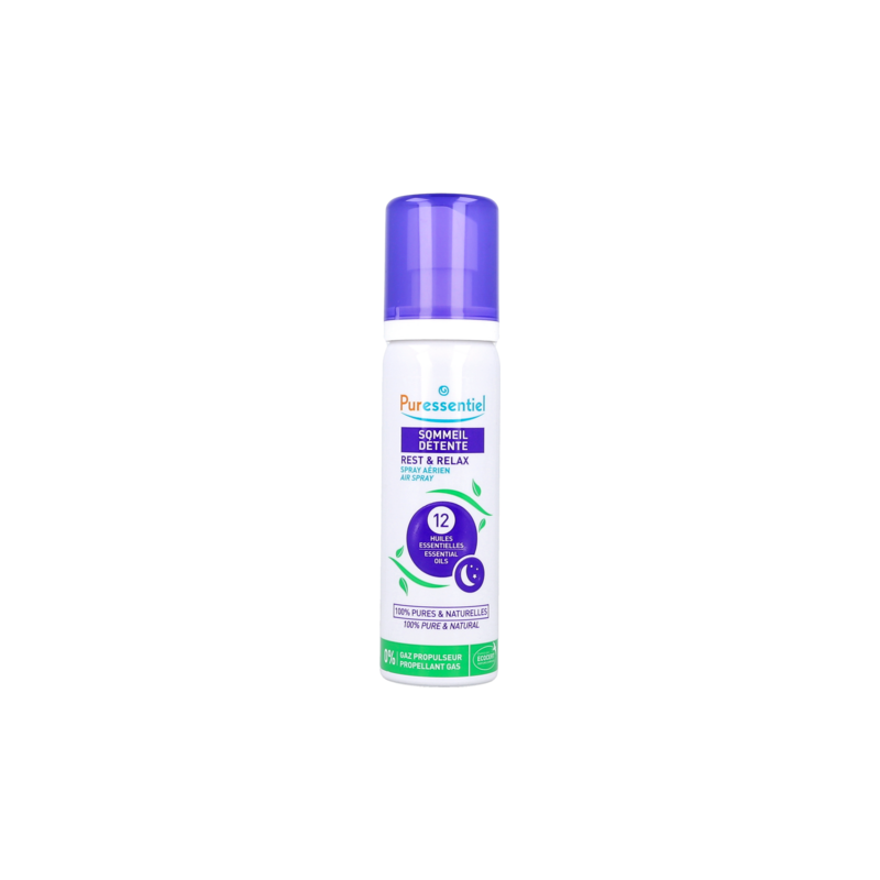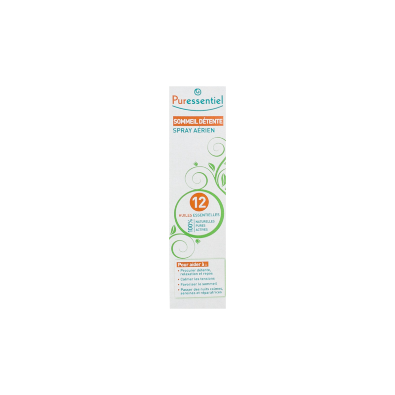 Le Spray Aérien Sommeil Détente des laboratoires Puressentiel contient 12 huiles essentielles aux vertus apaisantes, relaxantes et tranquilisantes favorisant naturellement la détente, la relaxation et le sommeil.