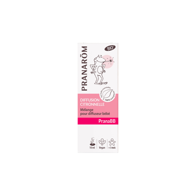 Le mélange pour diffuseur PranaBB "Citronnelle" combine l'efficacité de l'eucalyptus citronné, citronnelle de Java avec les agréables fragrances du palmarosa et du géranium et du cèdre de l'Atlas. Le tout pour une formule à 100% d'huiles essentielles certifiées bio*. Bébé peut dormir tranquille.