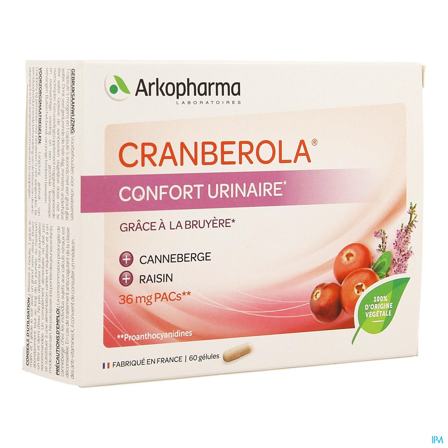 Complément alimentaire à base de Bruyère, de Cranberry et d'extrait de raison, apportant 36 mg de proanthocyanidines totaux (PAC) par jour. La Bruyère contribue aux fonctions d'élimination de l'organisme au niveau des voies urinaires.