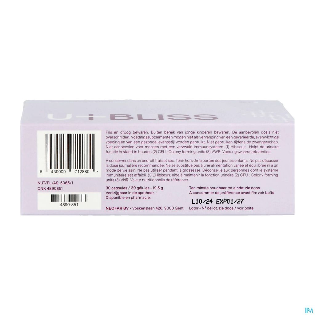 U-bliss contient des bactéries inoffensives qui atteignent les intestins vivantes grâce à une capsule résistante à l'acide. La dose initiale recommandée contient pas moins de 14 milliards d'unités formant colonie.