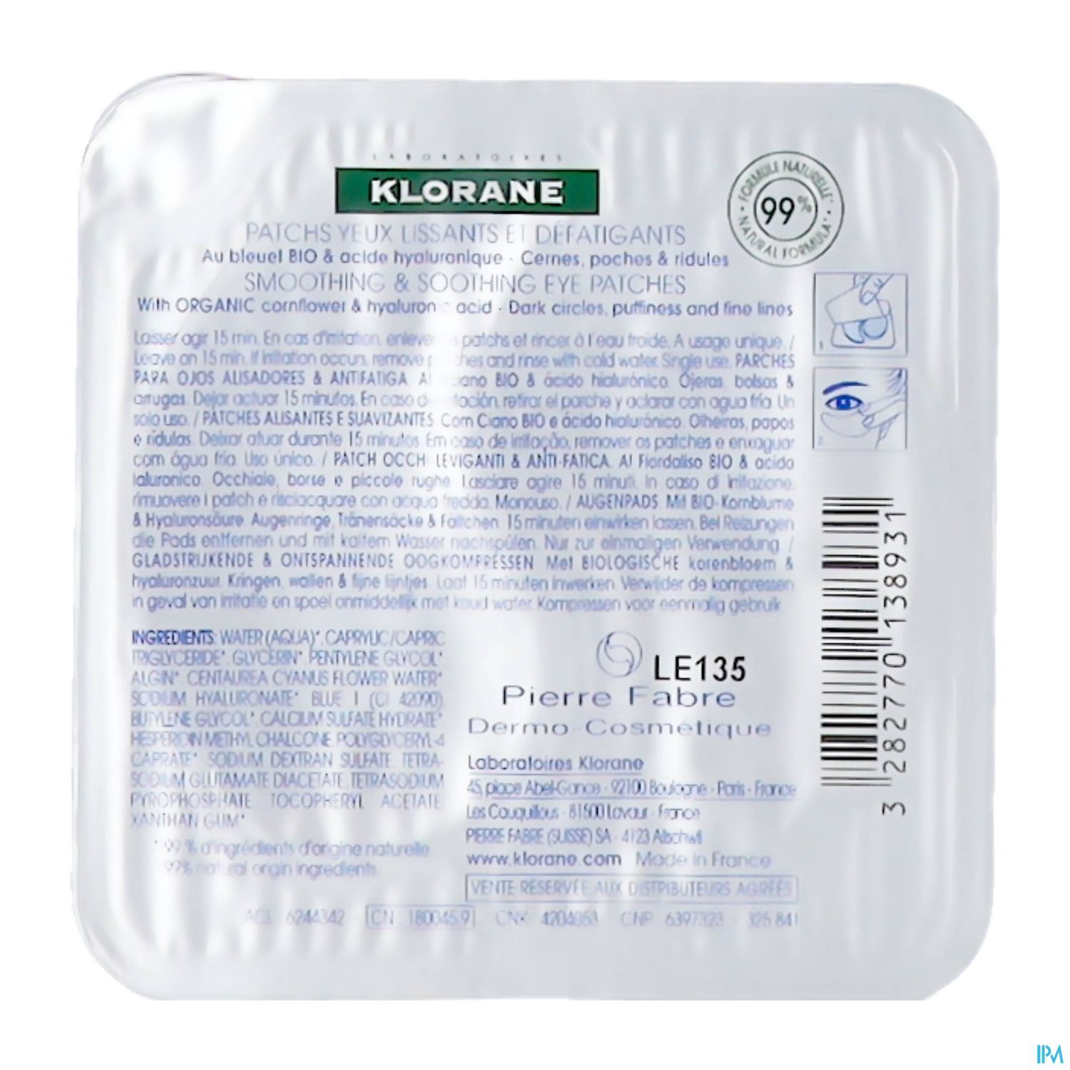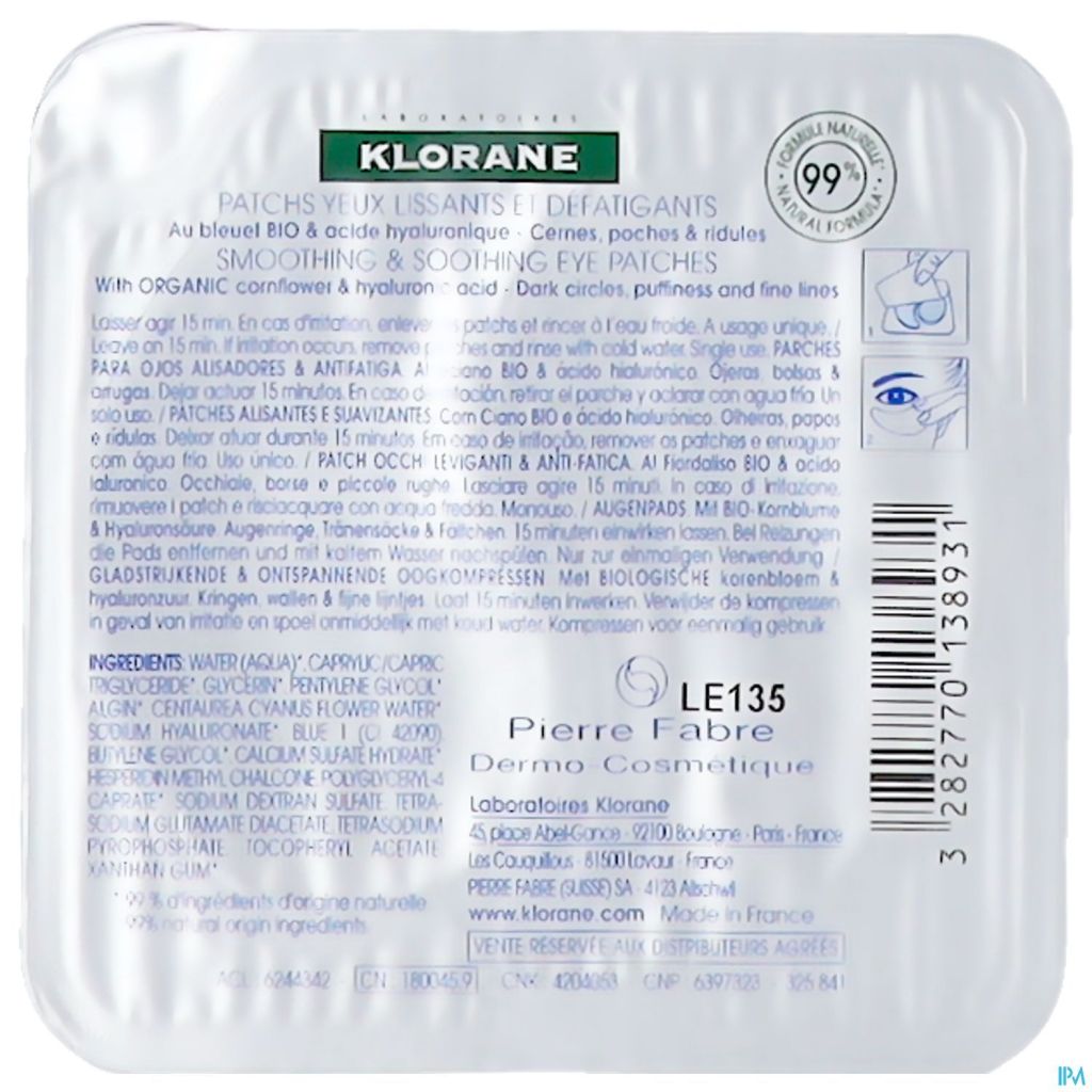Les patchs au Bleuet BIO hydratent, lissent les ridules et favorisent la décongestion du contour de l'œil.