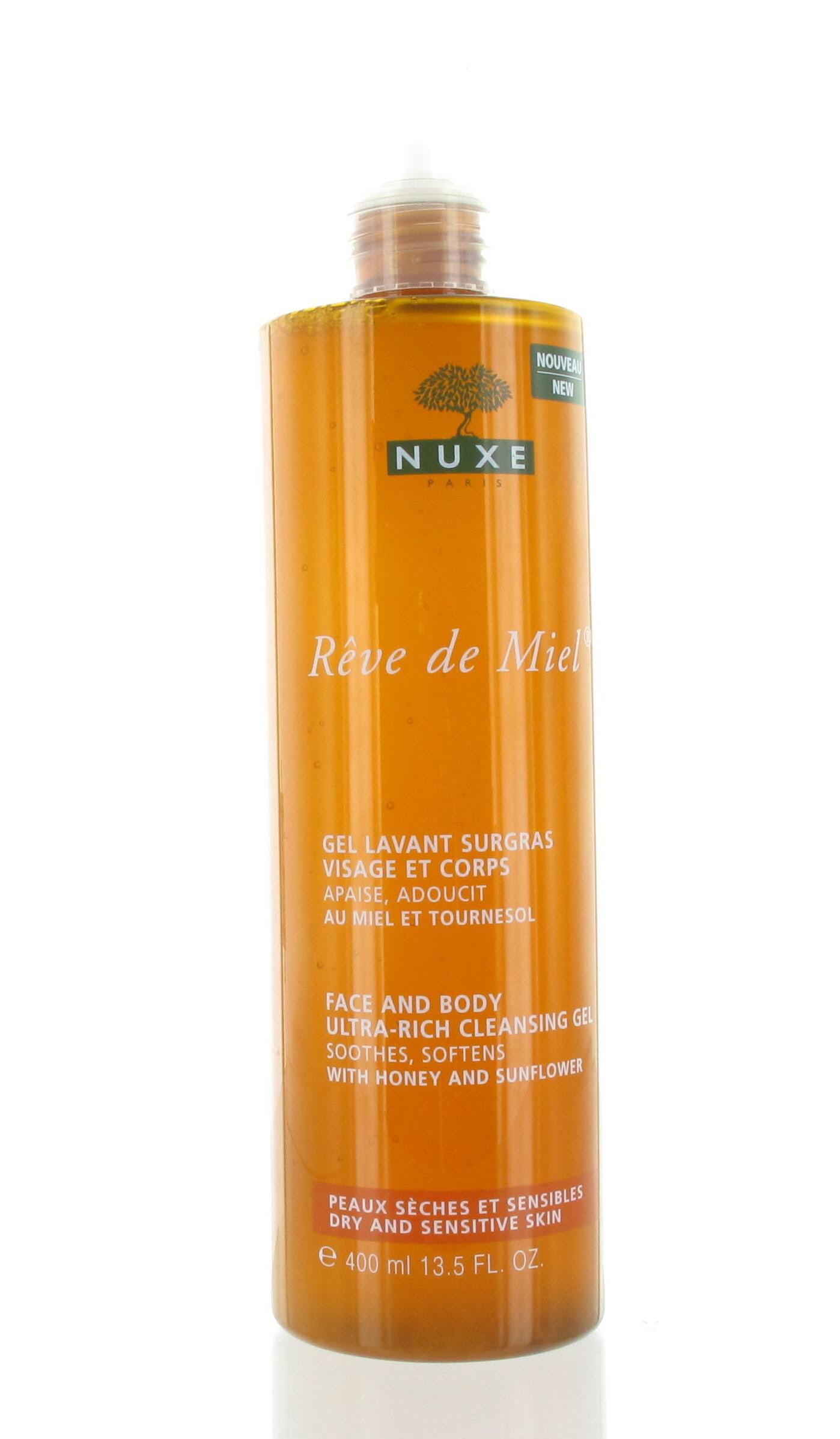 Le gel douche Rêve de miel des laboratoires Nuxe nettoie le visage et le corps sans dessécher la peau et apaise.