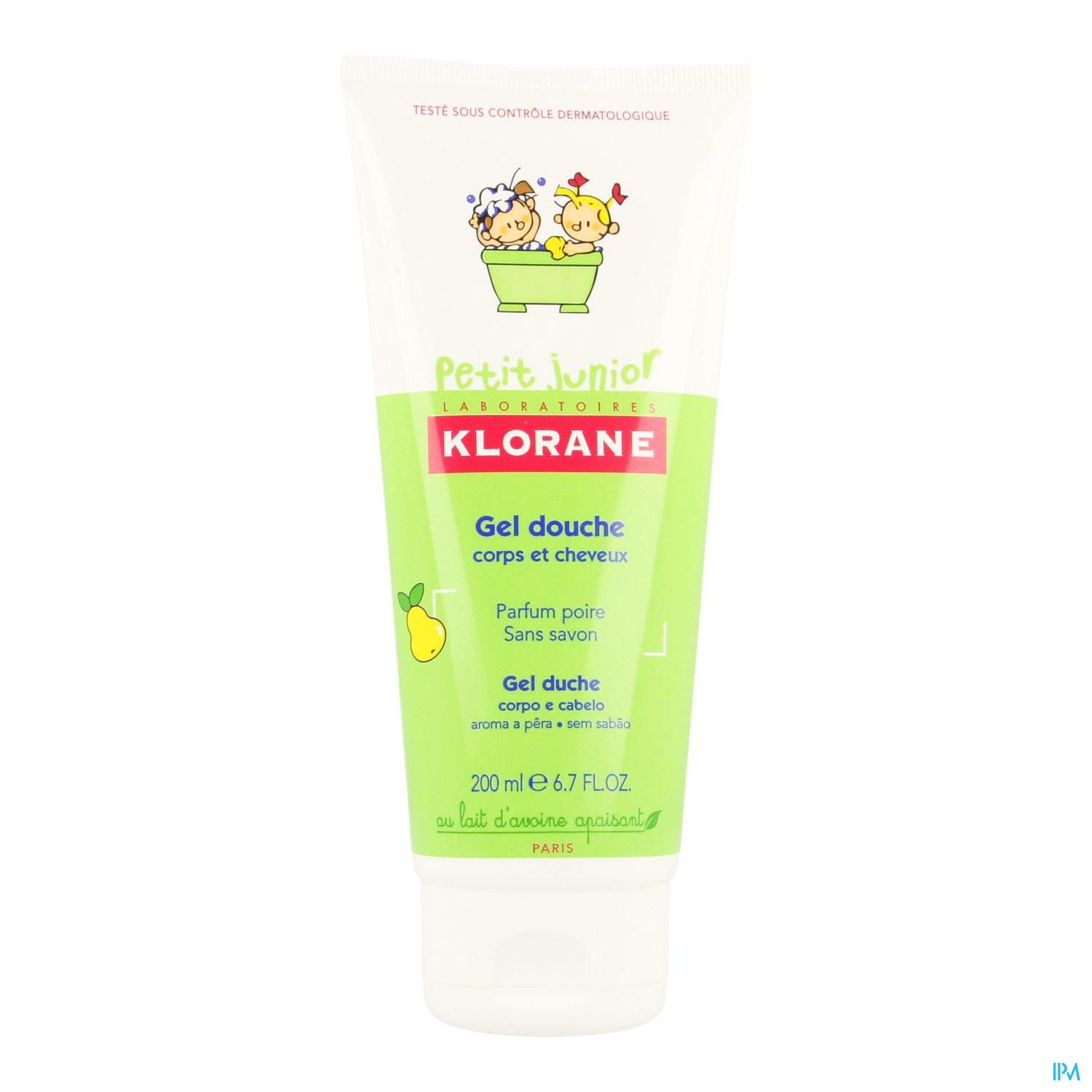 Le Gel Douche Corps et Cheveux KLORANE Petit Junior initie les enfants de façon ludique à l'apprentissage de la toilette. Ce gel lave en douceur la peau et les cheveux des enfants en un seul geste. Sa formule au lait de Graines de Coton respecte le film hydrolipidique des peaux délicates, protège les cheveux fragiles et leur apporte brillance et douceur. Sa note gourmande Poire laisse une peau douce et à croquer. • Usage fréquent • Sans savon • Parfum Poire Testé sous contrôle ophtalmologique • Hypoallergénique