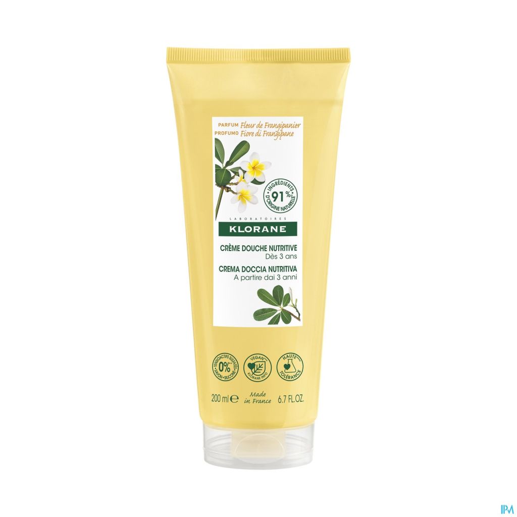 La Crème douche Klorane Fleur de Frangipanier nettoie en douceur et nourrit les peaux sèches. Sa formule crémeuse et généreuse tire ses bienfaits du beurre de Cupuaçu BIO, 1,5 fois plus nutritif que le beurre de Karité. Riche en acide gras et en actifs naturels nourrissants, la Crème douche va retenir l'eau dans l'épiderme pour apporter souplesse et hydratation à la peau. Parfaitement propre et nourrie, la peau s'enveloppe de notes relaxantes de fleur de frangipanier, eau de coco et vanille. Douce pour la peau et l'environnement, la Crème douche est écoresponsable avec sa formule biodégradable* et sa capsule écoconçue allégée de 40 % de plastique.*Selon la norme OCDE301B.