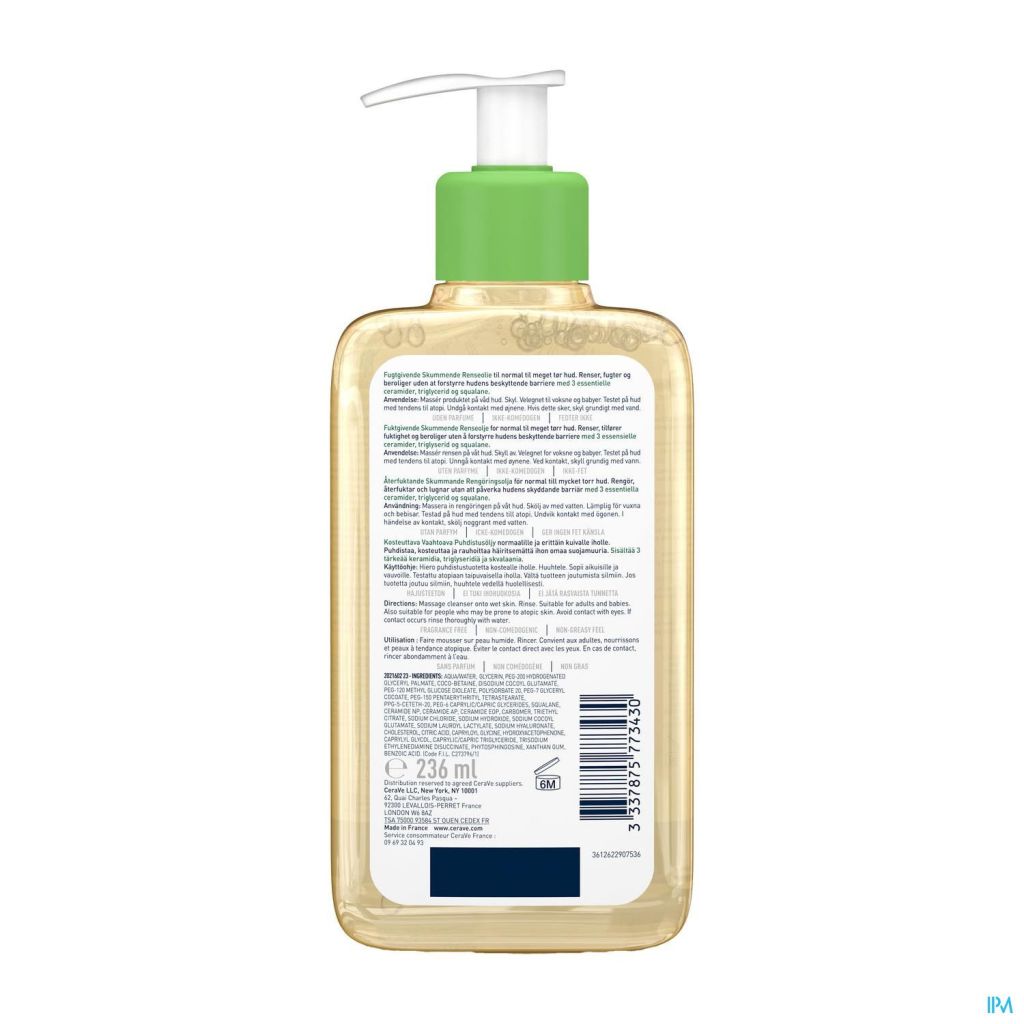 l'Huile Lavante Moussante Hydratante CeraVe nettoie en douceur, hydrate et apaise la peau sans altérer la fonction naturelle de la barrière cutanée.