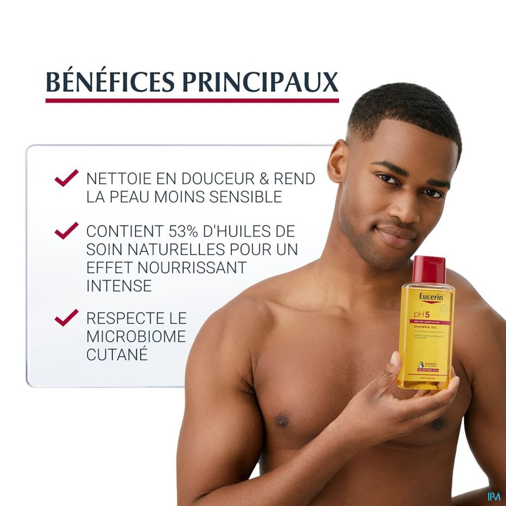 Utilisez l'Huile de Douche Eucerin pH5 quotidiennement pour préserver la fonction de barrière naturelle de la peau. Pour une protection optimale, complétez votre soin avec le Lait Corporel pH5 Eucerin.