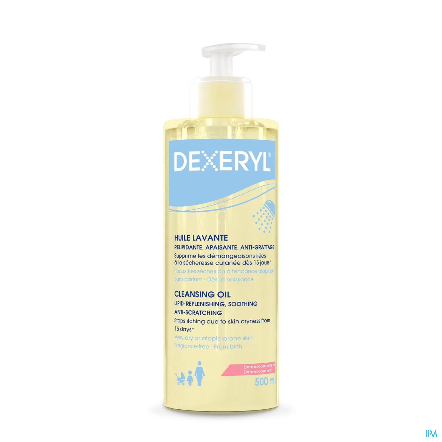 Les peaux sèches ou atopiques peuvent être irritées par les savons et l'eau. L'huile lavante DEXERYL est spécialement conçue pour nettoyer en douceur, apaiser et relipider la peau sèche, très sèche ou à tendance atopique tout en préservant la barrière cutanée. Elle supprime 100% des démangeaisons , liées à la sécheresse cutanée, en 15 jours¹, hydrate et relipide les peaux de toute la famille. Sa formule sans parfum et sans savon est utilisable dès la naissance. Sa texture fluide est agréable à appliquer, et produit une mousse légère et douce sur la peau, facile à rincer.