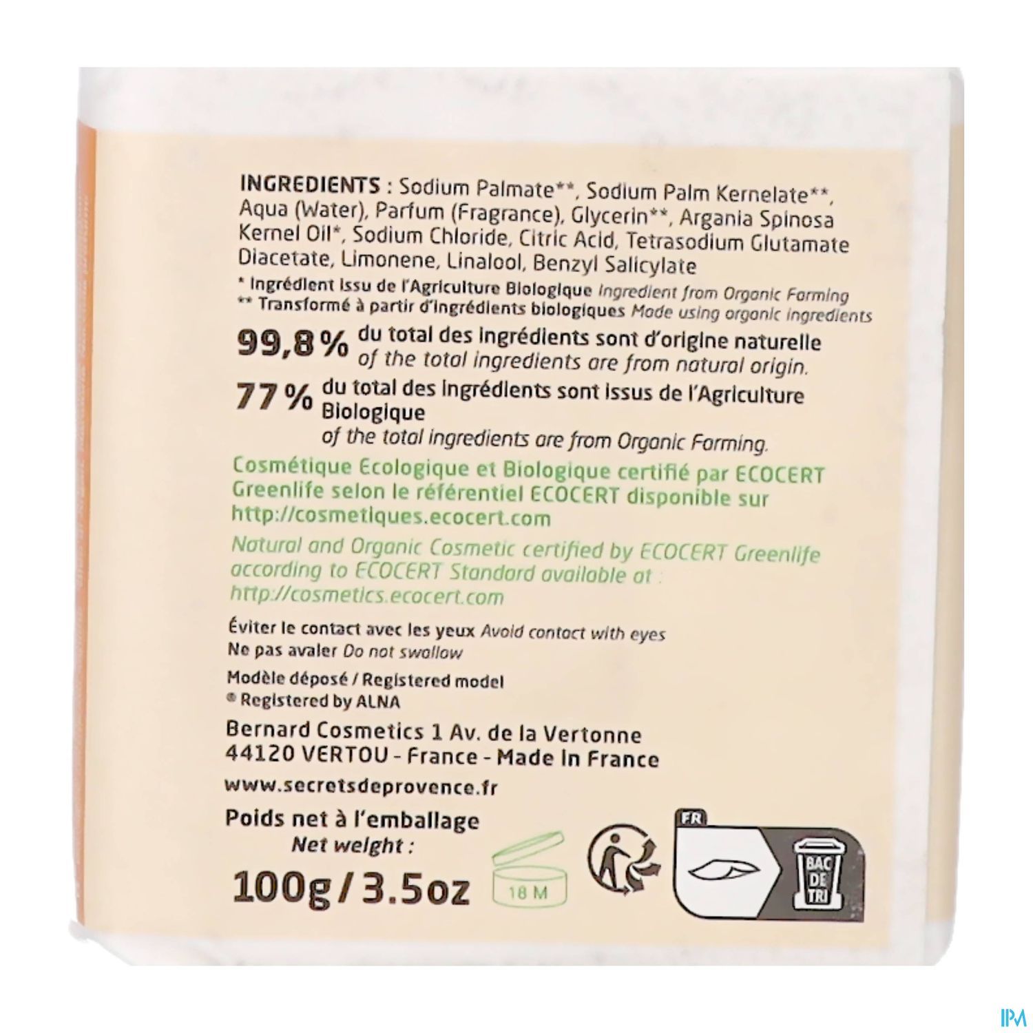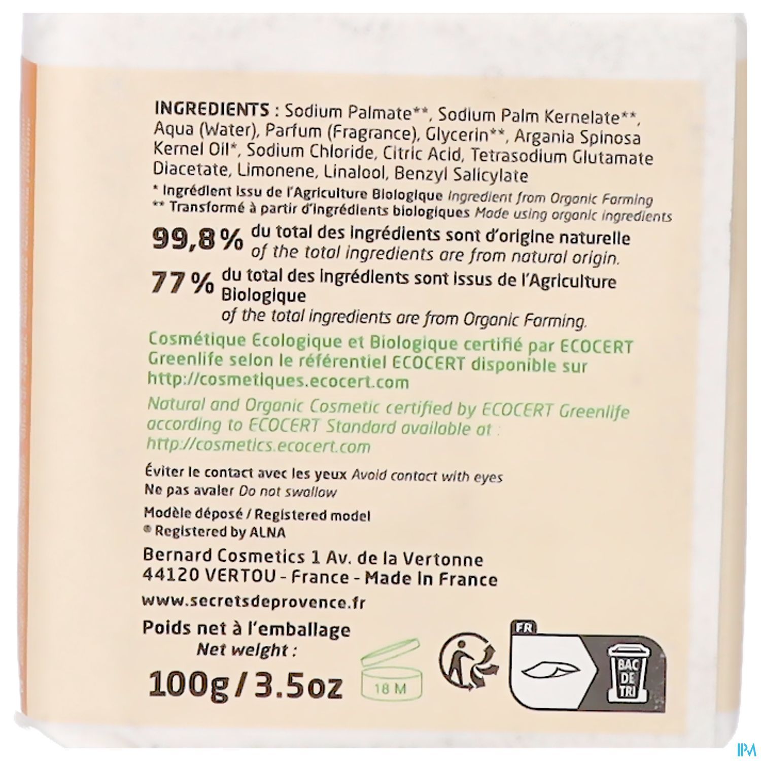 Liste INCI : Sodium Palmate**, Sodium Palm Kernelate**, Aqua(Water), Parfum (Fragrance), Glycerin**, Argania Spinosa Kernel Oil*, Sodium Chloride, Citric Acid, Tetrasodium Glutamate Diacetate, Limonene, Linalool, Benzyl Salicylate