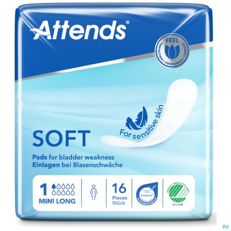 Attends Soft possède un noyau ultra absorbant qui assure une sensation de peau sèche et une sécurité longue durée. Le noyau renferme en outre le système Odour Protection qui capture le liquide et les odeurs à l'intérieur.
