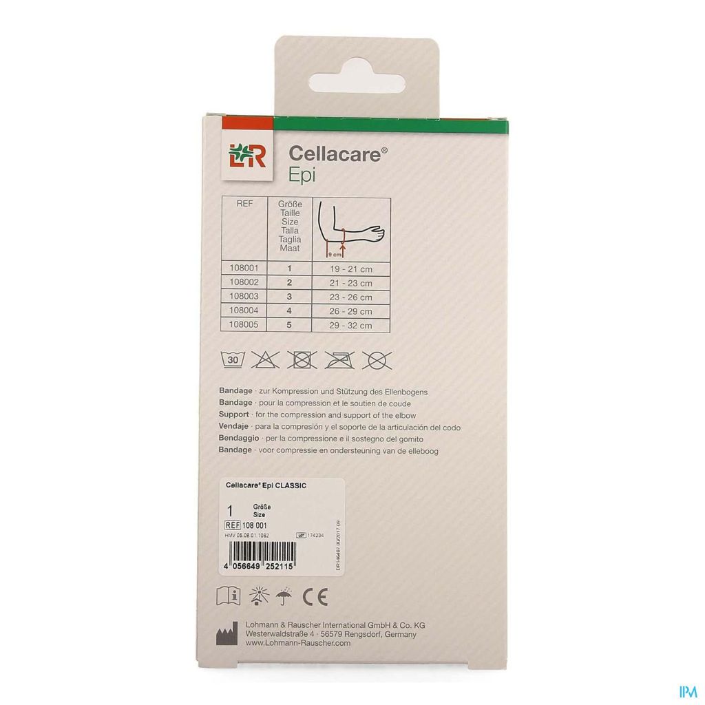 Cellacare® Epi Classic est un bandage tricotépour la compression et le soulagement del'articulation du coude et des unités tendino-musculaires proches de l'articulation