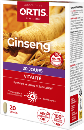 - Chaque dose journalière contient : 720 mg de GINSENG, 40 mg de GINSENOSIDEN, garant de l'effet adaptogène, + 500 mg de gelée royale.