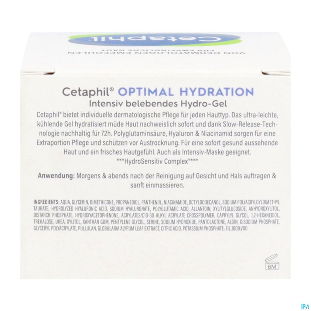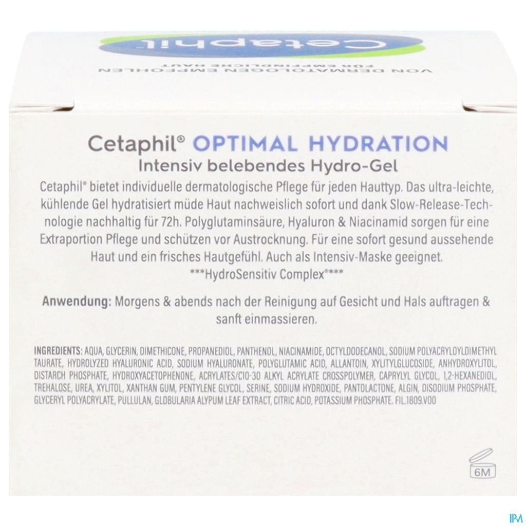 Aqua, Glycérine, Diméthicone, Propanediol, Panthenol, Niacinamide, Octyldodecanol, Sodium Polyacryloyldimethyl Taurate, Acide Hyaluronique Hydrolysé, Sodium Hyaluronate, Acide Polyglutamique, Allantoïne, Xylitylglucoside, Anhydroxylitol, Distarch Phosphate, Hydroxyacetophenone, Acrylates/C10-30 Alkyl Acrylate Crosspolymer, Caprylyl Glycol,1,2-Hexanediol, Trehalose, Urea, Xylitol, Xanthan Gum, Pentylene Glycol, Serine, Sodium Hydroxide, Pantolactone, Algin, Disodium Phosphate, Glyceryl Polyacrylate, Pullulan, Globularia Alypum Leaf Extract, Citric Acid, Potassium Phosphate. FIL.1809