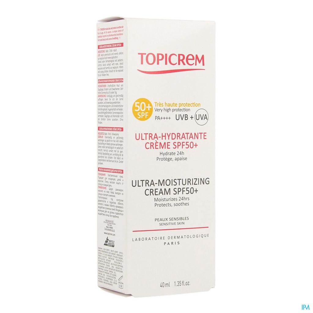 L'ULTRA-HYDRATANTE CRÈME SPF50+ a été spécialement formulée pour protéger du soleil les peaux sensibles de toute la famille. Elle est adaptée aux sorties au parc, à la campagne ou encore à la mer ou à la montagne…. Sa texture non grasse, non collante s'étale facilement sans laisser de traces blanches et pénètre rapidement. Appliquer généreusement et uniformément sur le visage et le corps avant l'exposition. Renouveler fréquemment l'application, particulièrement en cas de transpiration, de baignade ou de frottements. Eviter le contact avec les yeux. Formule développée pour la peaux des bébés et des enfants, testé sous contrôle dermatologique et pédiatrique, hypoallergénique, sans paraben. Hydratation 24H. Eviter l'exposition solaire dangereuse pour la santé. Ne pas exposer les bébés et les jeunes enfants.