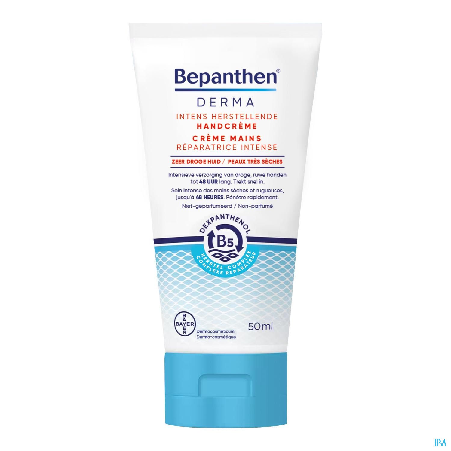 Bepanthen Derma Crème Mains Réparatrice Intense. Hydrate, protège et aide à réparer la peau pour des mains douces et souples. Disponible dans votre pharmacie, également en ligne !
