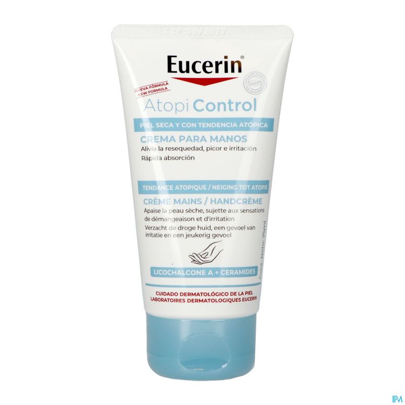 La crème pour les mains Eucerin AtopiControl apaise la peau. Saformule non grasse pénètre rapidement et contient un complexe unique d'ingrédients actifs : l'émollient Licochalcone A, l'antibactérien Decanediol et le Menthoxypropanediol (MPD) qui apaise la sensation de démangeaison. Ce complexe, associé à une forte concentration de céramides et d'Avena Sativa (avoine), contribue à renforcer la barrière cutanée, à réduire la sécheresseet à apaiser les démangeaisons de la peau.
