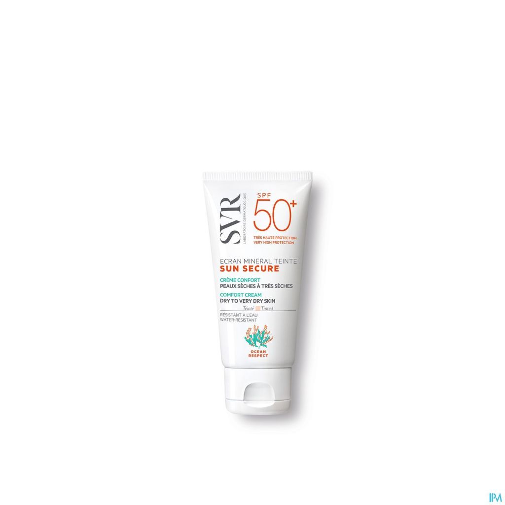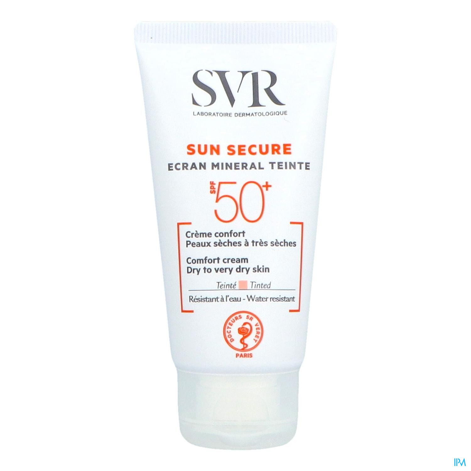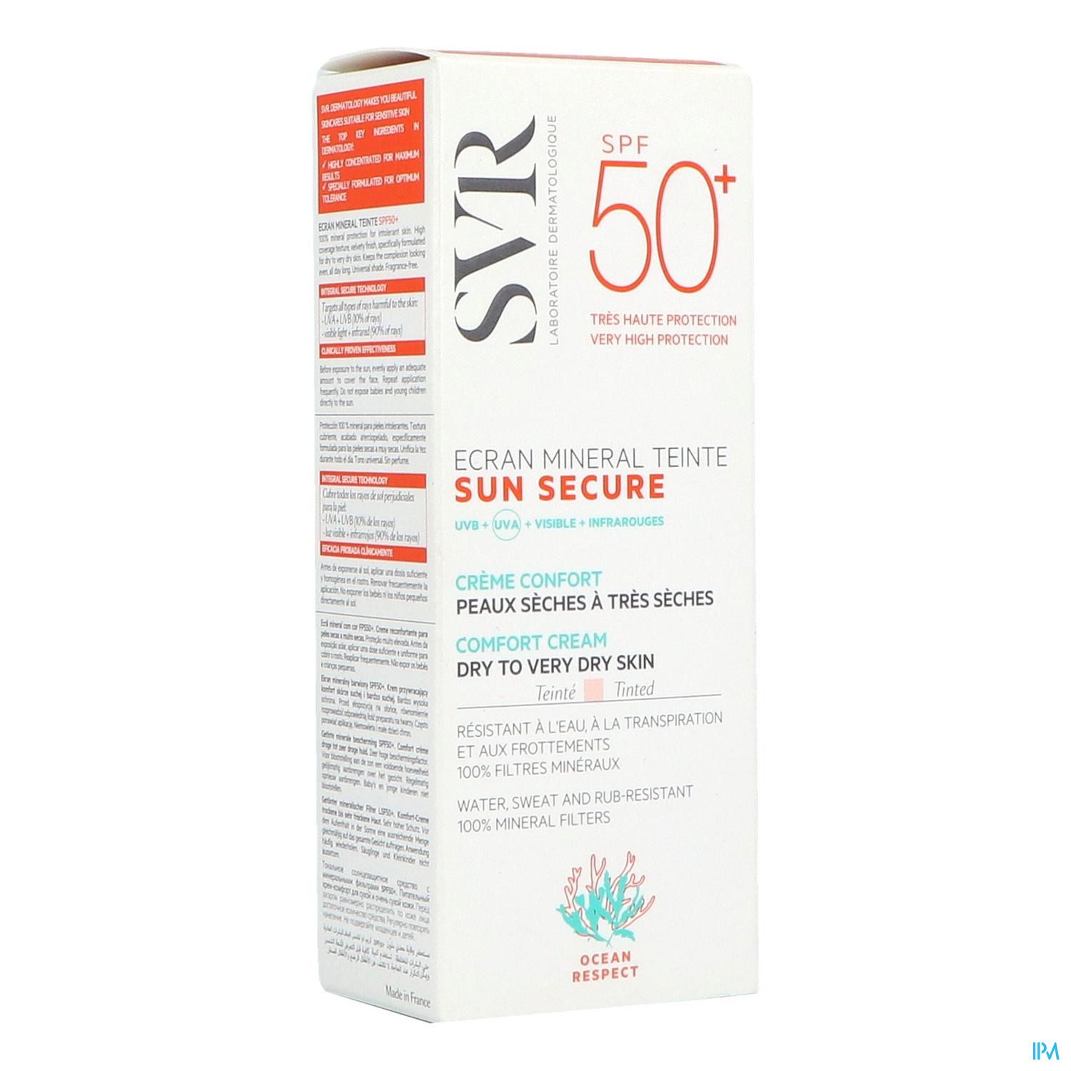 Écran Minéral Teinté SPF50+ SUN SECURE Écran Minéral Teinté SPF50+ est un soin qui allie très haute protection SPF50+ 100% minérale et maquillage. Il convient aux peaux intolérantes mais aussi aux femmes qui souhaitent se maquiller au soleil toute l'année. Grâce à sa bonne couvrance, les imperfections sont camouflées, le teint unifié toute la journée. Il existe en deux versions : crème toucher sec peaux normales à mixtes et crème confort peaux sèches à très sèches. Grâce à sa teinte universelle, il convient à toutes les carnations. Ce soin résiste à l'eau, à la transpiration et aux frottements pour une protection optimale.