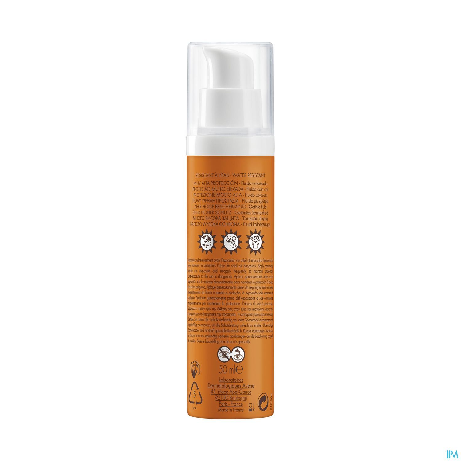 Grâce à sa texture Sensation peau nue, le Fluide teinté SPF 50+ laisse un fini imperceptible sur la peau. Sa texture légère subtilement teintée unifie la peau, pour un teint lumineux et éclatant. Le Fluide sans parfum SPF 50+ est parfaitement adapté aux peaux sensibles normales à mixtes exposées à un ensoleillement intense et/ou régulièrement sujettes aux coups de soleil. Au coeur du Fluide teinté SPF 50+, l'association exclusive Sunsitive® protection, issue de la Recherche Pierre Fabre et composée : - D'un système filtrant breveté contenant seulement quatre filtres solaires, pour une très large protection UVB-UVA stable et une tolérance cutanée optimale. - De Provitamine E (Pré-tocophéryl), puissant antioxydant, pour une protection des cellules des radicaux libres. - D'Eau thermale d'Avène reconnue pour ses propriétés apaisantes, anti-irritantes et adoucissantes. Son flacon-pompe airless permet de doser facilement la juste quantité de produit à appliquer.