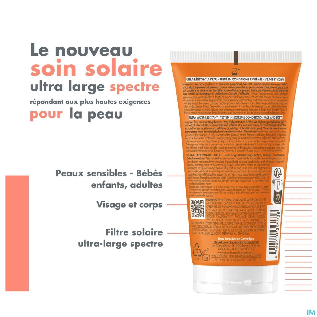 AVENE THERMAL SPRING WATER (AVENE AQUA). C12-15 ALKYL BENZOATE. CAPRYLIC/CAPRIC TRIGLYCERIDE. DICAPRYLYL CARBONATE. DIETHYLAMINO HYDROXYBENZOYL HEXYL BENZOATE. GLYCERIN. ETHYLHEXYL TRIAZONE. PHENYLENE BIS-DIPHENYLTRIAZINE. WATER (AQUA). BIS-ETHYLHEXYLOXYPHENOL METHOXYPHENYL TRIAZINE. POTASSIUM CETYL PHOSPHATE. STEARYL ALCOHOL. VP/EICOSENE COPOLYMER. BENZOIC ACID. CAPRYLYL GLYCOL. GLYCERYL BEHENATE. GLYCERYL DIBEHENATE. GLYCERYL STEARATE. PEG-100 STEARATE. POLYACRYLATE-13. POLYISOBUTENE. POLYSORBATE 20. PPG-1-PEG-9 LAURYL GLYCOL ETHER. RED 33 (CI 17200). SORBITAN ISOSTEARATE. TOCOPHEROL. TOCOPHERYL GLUCOSIDE. TRIBEHENIN. XANTHAN GUM