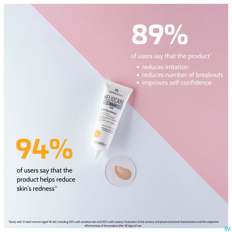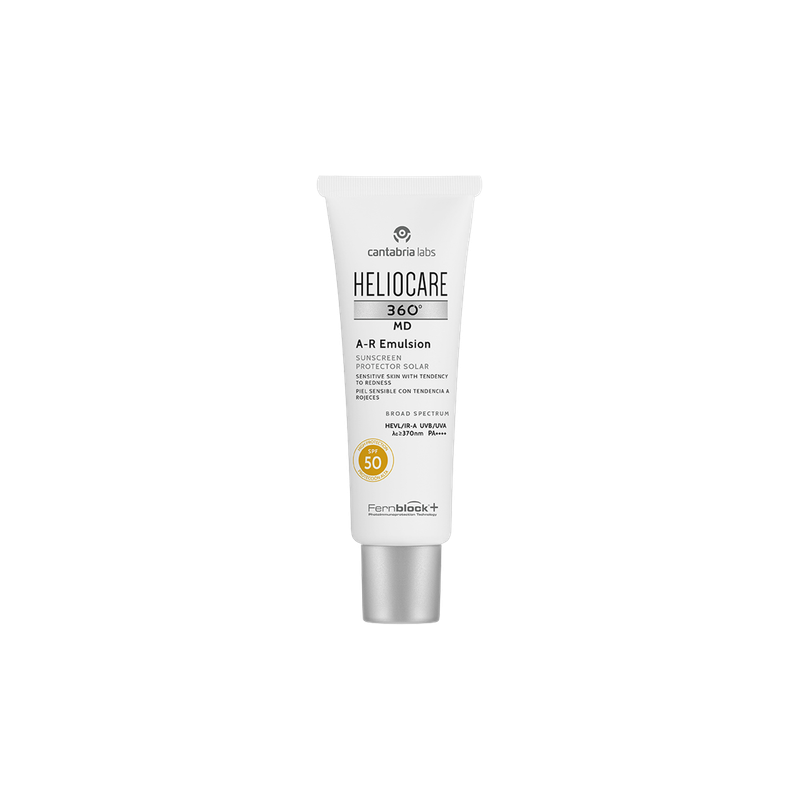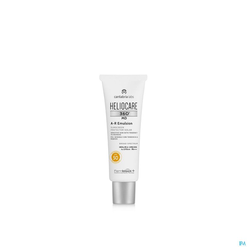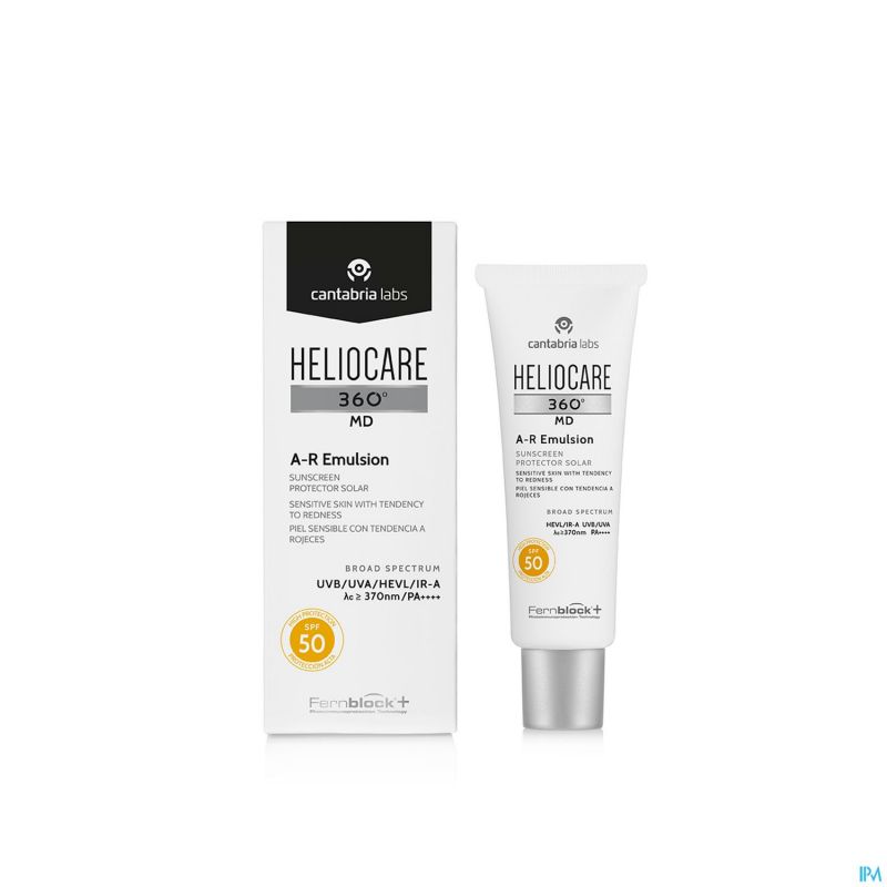 INCI Heliocare 360 MD AR Emulsion SPF50+ : Aqua ; Alcanes de noix de coco ; Oxyde de zinc (nano) ; Caprylylméthicone ; Isododécane ; Cyclopentasiloxane ; Dioxyde de titane (nano) ; Butylène glycol ; PEG-9 Poydiméthylsiloxyéthyldiméthicone ; Tris-biphényltriazine (nano) ; Diméthicone ; Diméthicone polyglycéryl-3 polydiméthylsiloxyéthyle ; Coco-caprylate/caprate ; extrait de feuilles de Polypodium leucotomos ; benzoate de phénéthyle ; Pentylène glycol ; extrait de feuilles de Tambourissa trichophylla ; Glutathion ; extrait de Physalis angulata ; acétate de Tocopheryl ; Squalane ; triglycéride caprylique/caprique ; polymère croisé de méthacrylate de méthyle ; propylèneglycol ; hydroxyde d'aluminium ; acide stéarique ; polymère croisé de diméthicone/PEG-10/15 ; dipropylèneglycol ; Hectorite de diéardimonium ; carbonate de propylène ; glucoside de décyle ; Tocophérol ; Citrate de sodium ; Gomme de xanthane ; Phosphate disodique ; Sulfate de magnésium ; EDTA disodique ; Phénylpropanol ; Propanediol ; Caprylylglycol ; Triéthoxycaprylylsilane ; CI 77492 (oxyde de fer) ; CI 77499 (oxyde de fer) ; CI 77491 (oxyde de fer)