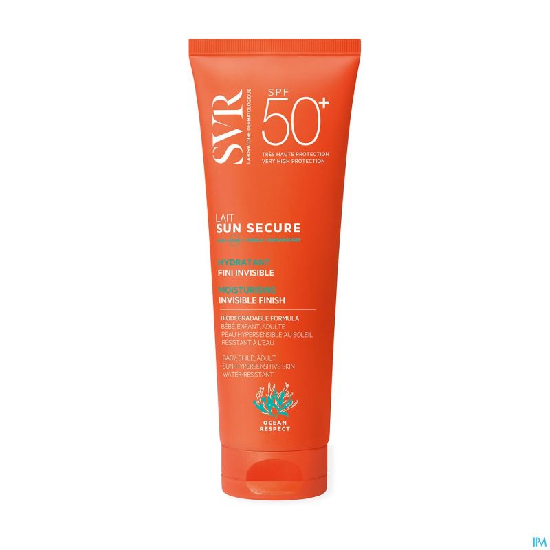 Lait biodégradable hydratant SPF50+ SUN SECURE Lait SPF50+ offre une très haute protection dermatologique intégrant le nouveau brevet filtrant SVR1 respectueux de l'environnement marin et des mécanismes endocriniens évalués2. Associé à une technologie antioxydante, cible tous les types de rayons3 : - UVB + UVA : 4 filtres solaires - VISIBLE + INFRAROUGES : technologie antioxydante 1- Brevet déposé n°FR19/04215 2- Testé sur produit fini par un laboratoire indépendant, expert de la perturbation endocrinienne (Évaluation sur certains mécanismes majeurs des systèmes oestrogéniques, androgéniques et thyroïdiens) 3- Un produit de protection solaire ne protège jamais totalement