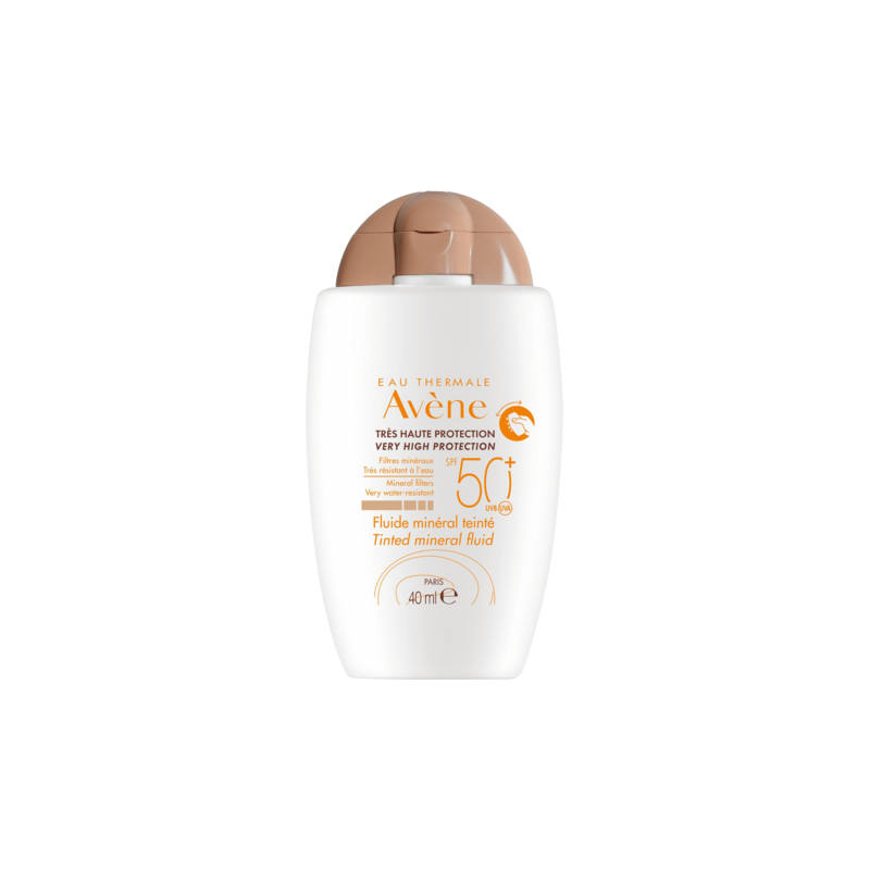 Un soin solaire teinté 100% minéral au fini mat, sans parfum et très résistant à l'eau. Le parfait équilibre entre une très haute protection solaire UVB-UVA (courts et longs), et une bonne tolérance pour les peaux intolérantes aux filtres chimiques et aux parfums. Son complexe 100% minéral est stable. La Provitamine E (Pré-tocophéryl), puissant antioxydant, offre une protection cellulaire contre les radicaux libres. Sa texture fluide et légère hydrate* les peaux sensibles et/ou intolérantes, et sa composition intégrant de l'Eau thermale d'Avène, aux propriétés apaisantes et anti-irritantes, contribue au confort quotidien. Sa teinte dorée unifie et illumine le teint.
