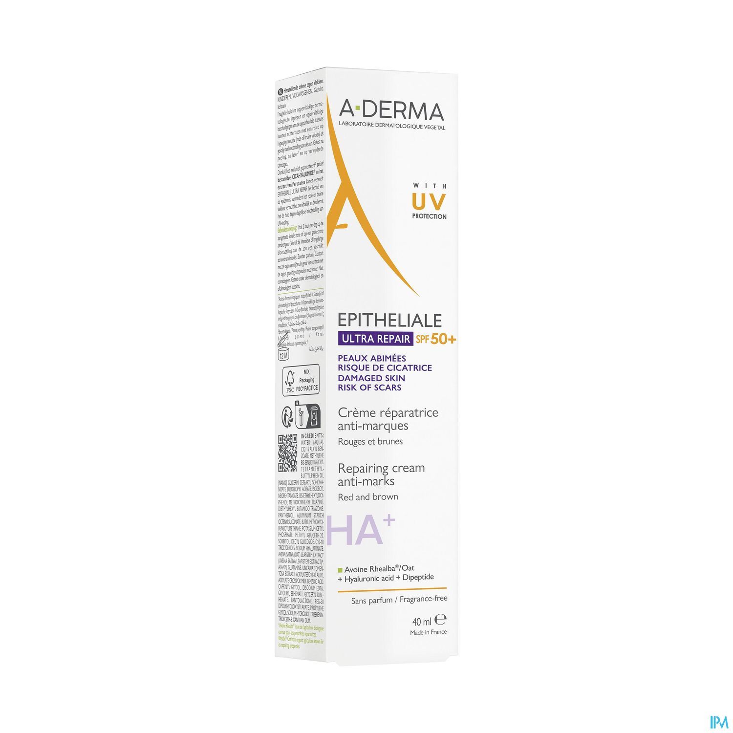 La crème réparatrice 2-en-1 EPITHELIALE ULTRA REPAIR SPF50+ favorise la réparation des peaux abimées* et leur offre une très haute protection solaire SPF50+ avec pour objectif un double effet anti-marques cicatricielles et pigmentaires. Cette crème réparatrice visage et corps contient un complexe breveté** réparateur, de 3 actifs nommé Cicahyalumide®, composé de Dipeptide, d'Acide hyaluronique et d'Extrait d'Avoine Rhealba®. On retrouve également la Liane du Pérou pour ses propriétés ultra-calmantes. Et pour assurer une tolérance optimale lors de l'utilisation, son système photoprotecteur comprend seulement 4 filtres en concentration optimisée. Cette crème réparatrice pour la peau abîmée est donc idéale pour apaiser et protéger au quotidien. Elle ne contient pas de parfum et est adaptée aux adultes comme aux enfants, et peut s'appliquer plusieurs fois par jour sur le visage et sur le corps. Avoine Rhealba® issue de l'agriculture biologique Info vegan : sans ingrédient d'origine animale