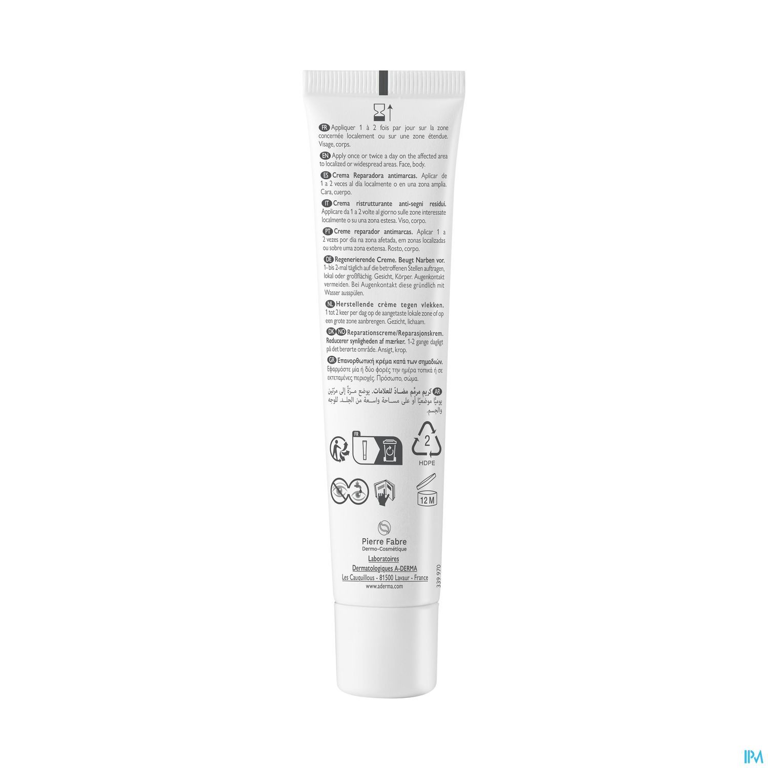 Aderma Epitheliale AH Ultra Repair IP50+ Crème Réparatrice Protectrice Anti-marques Peau Irritée 100 Ml