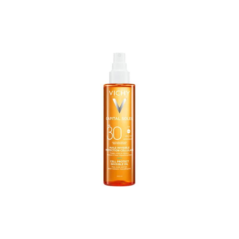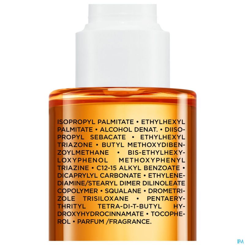 A la recherche d'une protection solaire ultra-sensorielle ? Découvrez l'huile sèche invisible SPF30, enrichie en actifs dermatologiques, qui protège des rayons UV, améliore la qualité de la peau et prévient le vieillissement cutané. Haute résistance à l'eau. Très haute protection. Protège la peau des rayons UV au niveau cellulaire. Nourrit et protège les cheveux du dessèchement. Invisible sur tous les phototypes.