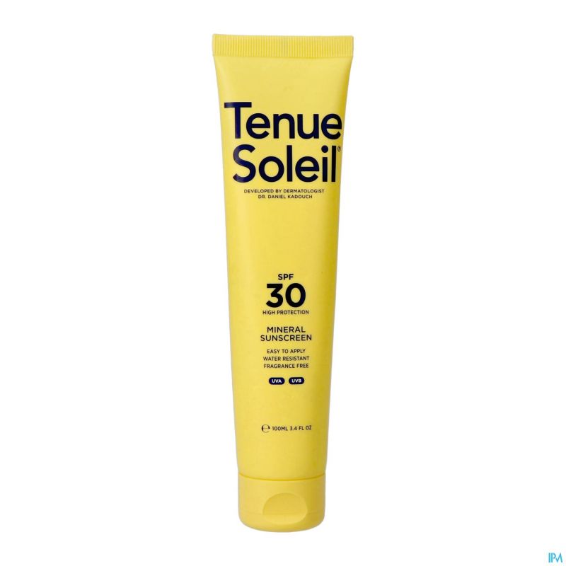 La crème solaire minérale Tenue Soleil ® SPF30, développée par le Dr Daniel Kadouch, dermatologue, offre une haute protection contre les rayons UV. Facile à appliquer, résistante à l'eau et sans parfum. Convient aux peaux normales et sensibles, aux adultes et aux enfants, au visage et au corps.