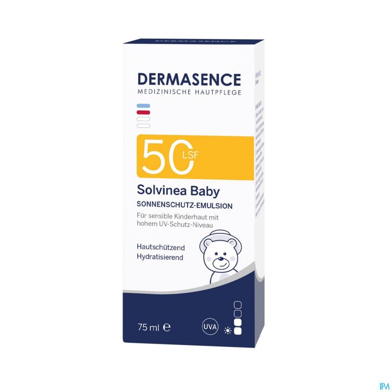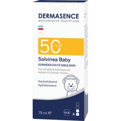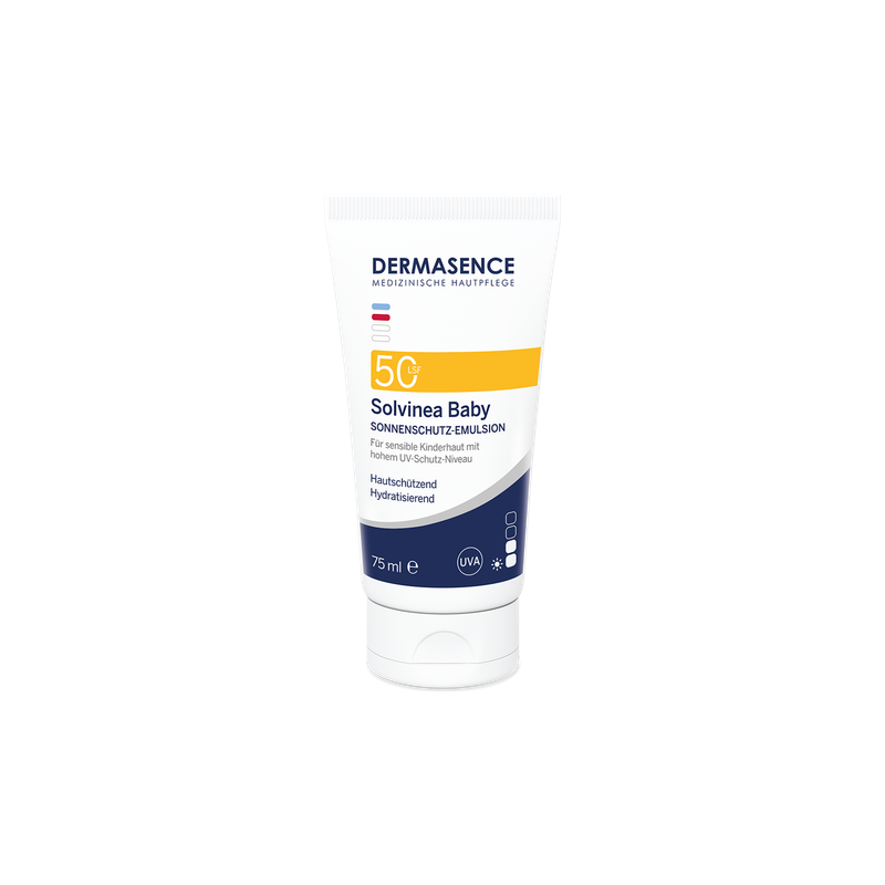 DERMASENCE Solvinea Baby SPF 50 a trois fonctions : l'émulsion protège avec un indice de protection solaire élevé dès lors qu'il n'est pas possible d'éviter l'exposition des enfants au soleil. Elle a un effet nourrissant et apaisant et protège les peaux sensibles du dessèchement grâce à un complexe hydratant et au beurre de karité. Grâce au tocophérol, l'émulsion protège contre les effets des radicaux libres causés par les rayons UV et IR. Sa texture légère s'étale facilement, ne colle pas et ne laisse pas de traces blanches. Le produit est encore mieux toléré par la peau car il ne contient pas de parfum. Pour un environnement sûr, même à l'ombre.