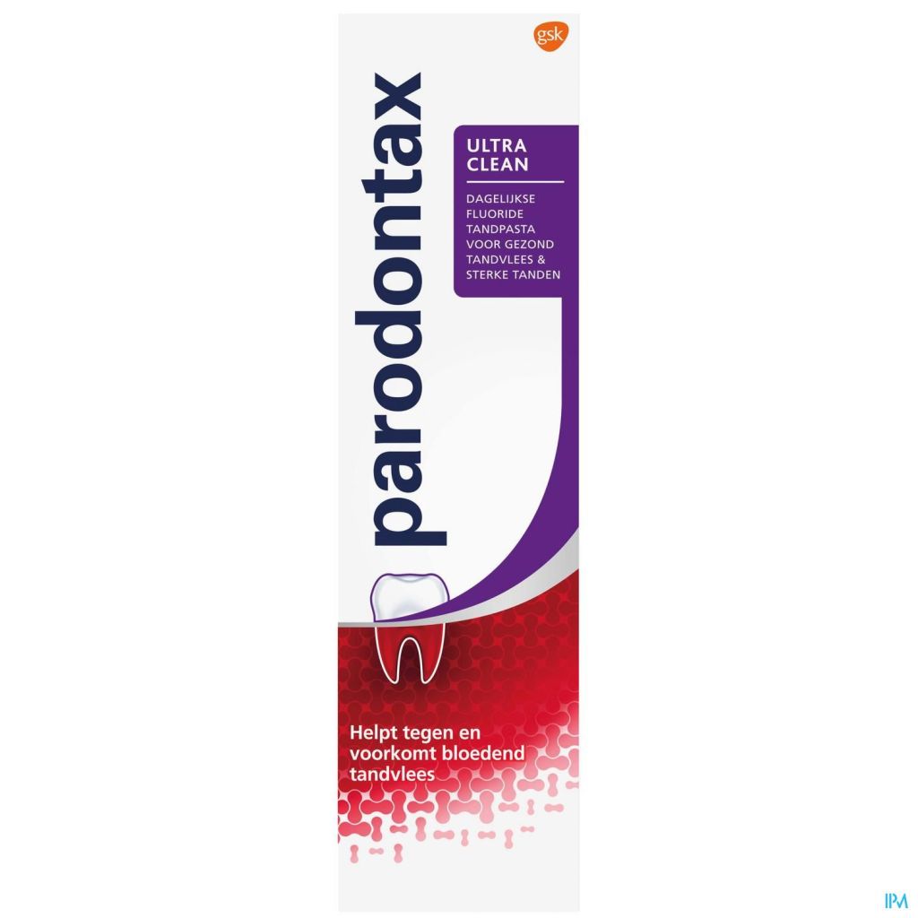 Le dentifrice Parodontax Ultra Clean: Aide à arrêter et prévenir le saignement des gencives 4x plus efficace pour éliminer la plaque dentaire* Pour des gencives saines et des dents fortes Usage quotidien Goût mentholé *En comparaison à un dentifrice ordinaire, en cas de brossage 2 fois par jour
