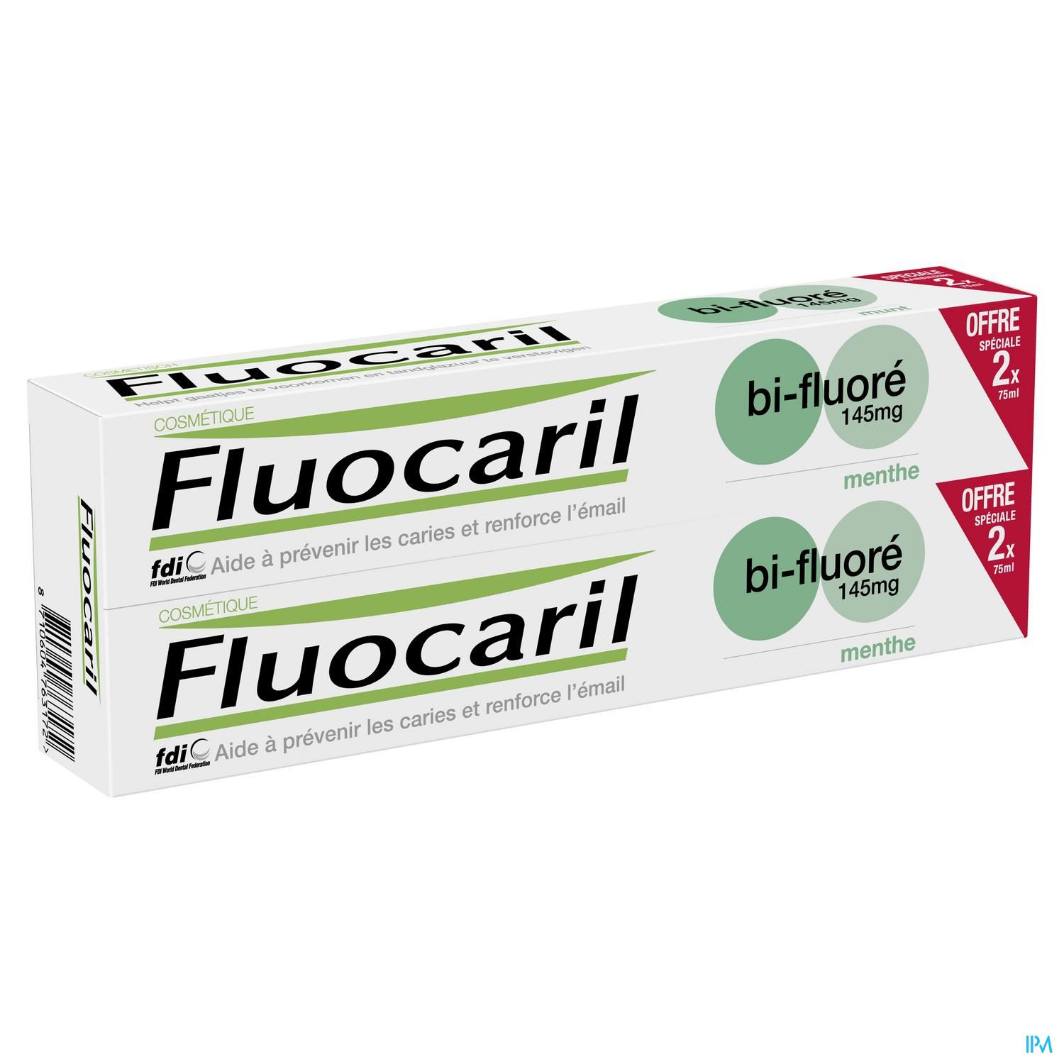 Fluocaril Bi-Fluoré 145 mg Menthe, dentifrice contenant du fluor sous forme de deux sels : le fluorure de sodium et le phosphate de monofluorure de sodium. Aide à prévenir les caries et à renforcer l'émail.