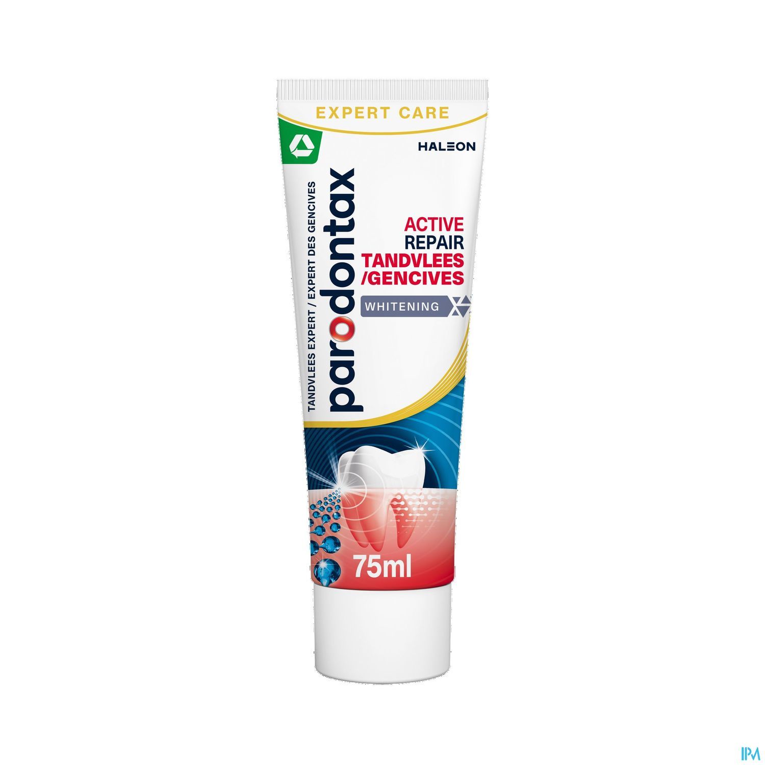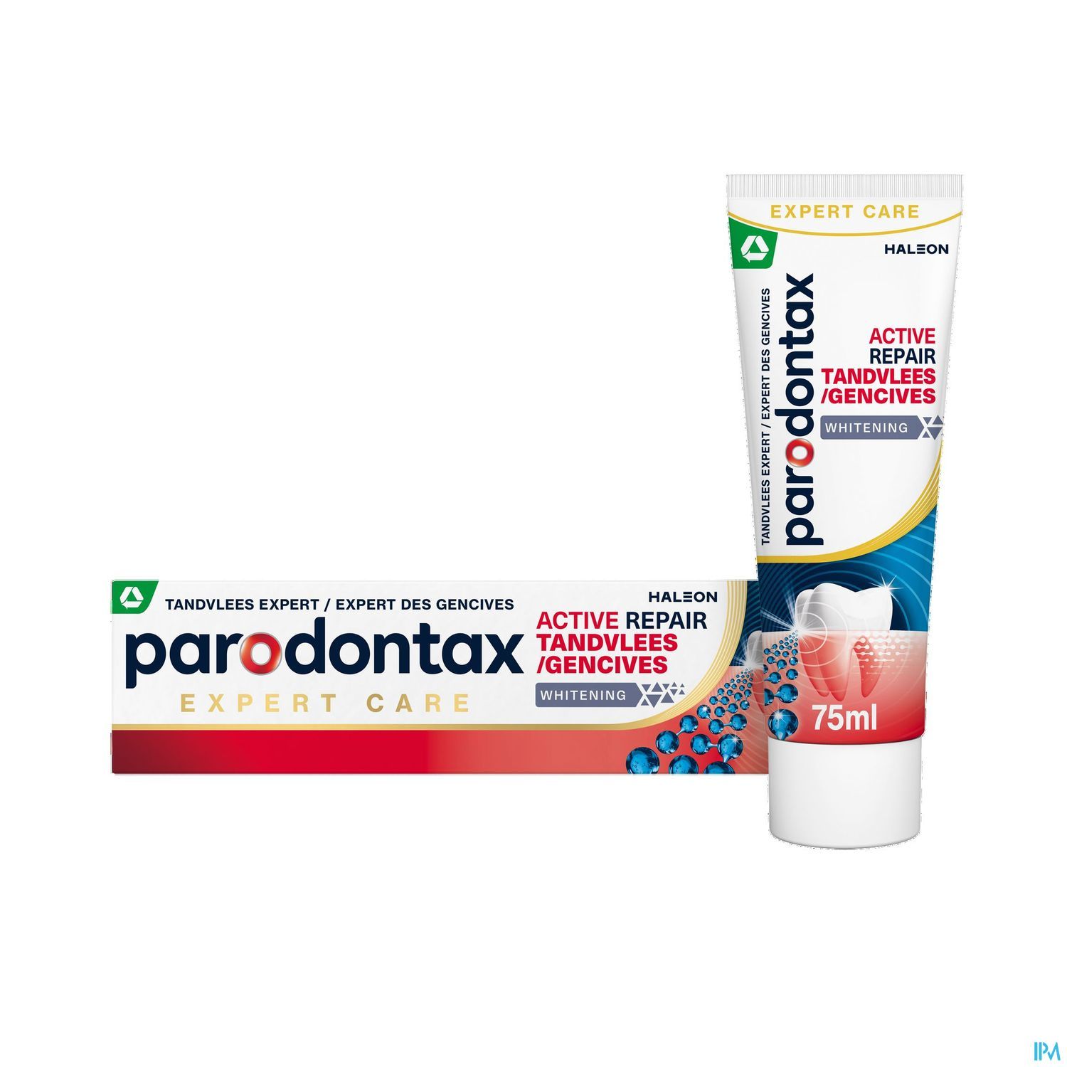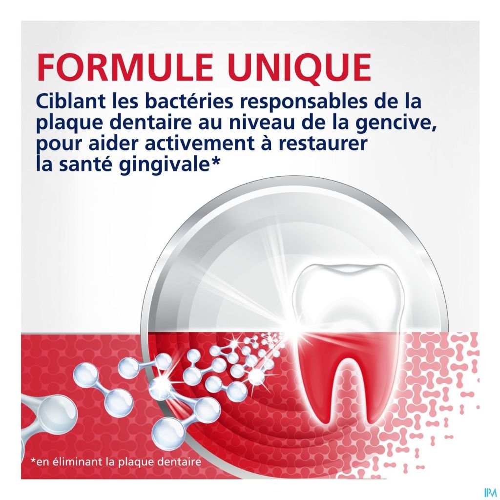 Dentifrice Parodontax Active Repair Gum Fresh Mint. Aide à inverser les signes précoces de saignement des gencives en s'attaquant à la cause principale, la plaque dentaire. Il élimine activement les bactéries de la plaque, ce qui permet aux gencives de se rétablir et de former un joint étanche autour des dents pour aider à stopper le saignement des gencives. Pour des gencives saines et des dents fortes.