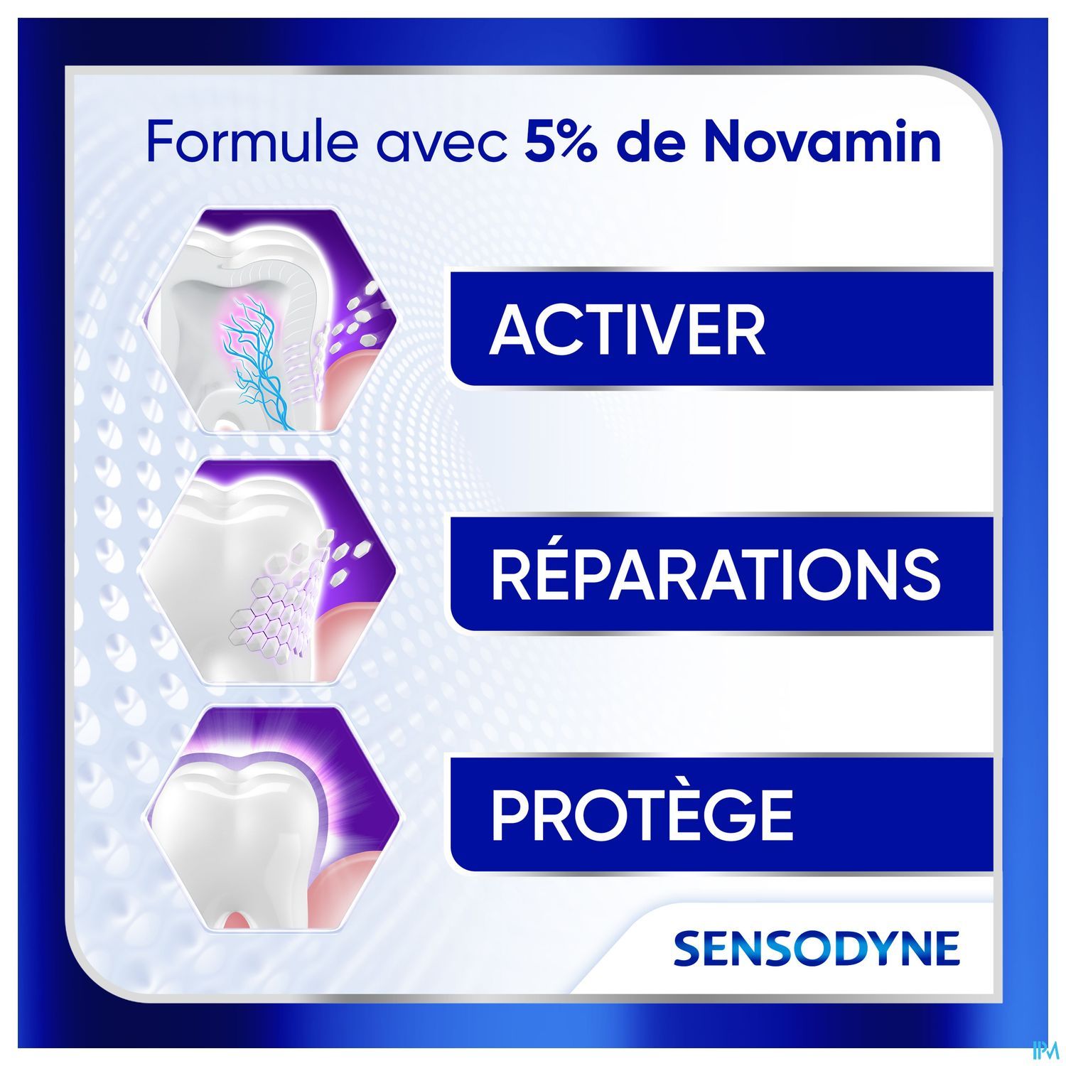 Sensodyne Clinical Repair Deep Clean est un dentifrice quotidien au fluorure pour les dents sensibles. Sa formule contenant 5 % de Novamin forme une couche protectrice sur les zones sensibles de la dent et protège ainsi contre la sensibilité.