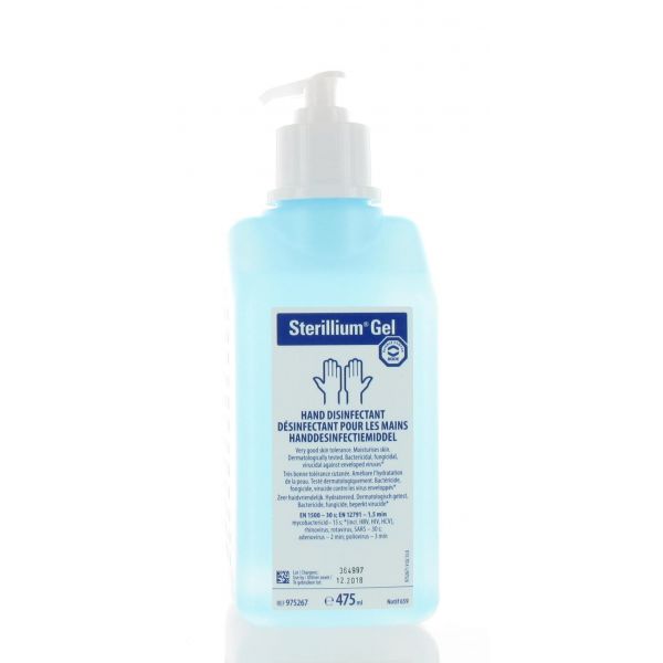 Le gel Sterillium est un gel désinfectant pour les mains testé dermatologiquement. Très bonne tolérance cutanée. Améliore l'hydratation de la peau. Bactéricide, fongicide, virucide contre les virus enveloppés.